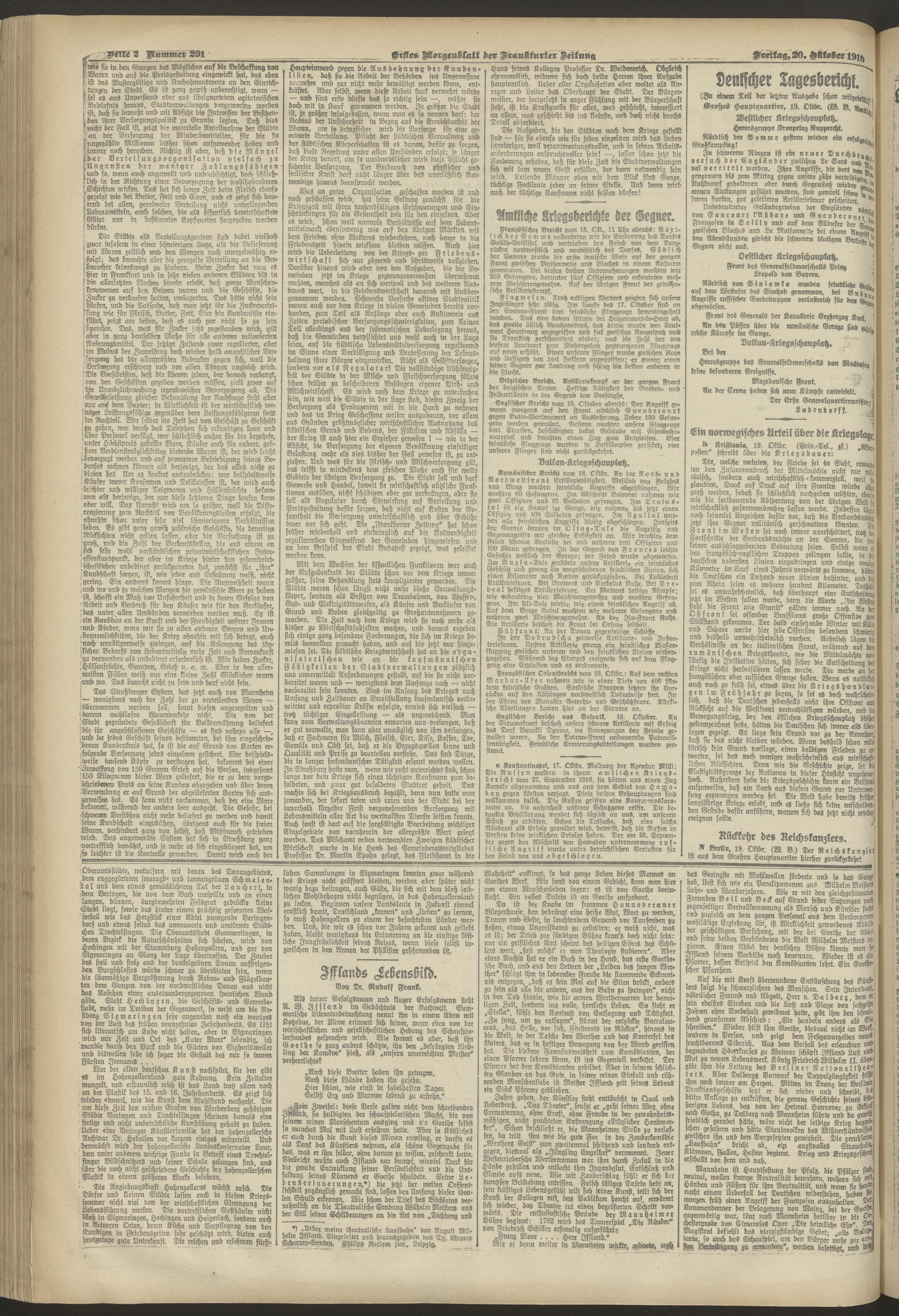 20.10.1916 = Nr. 291. Erstes Morgenblatt