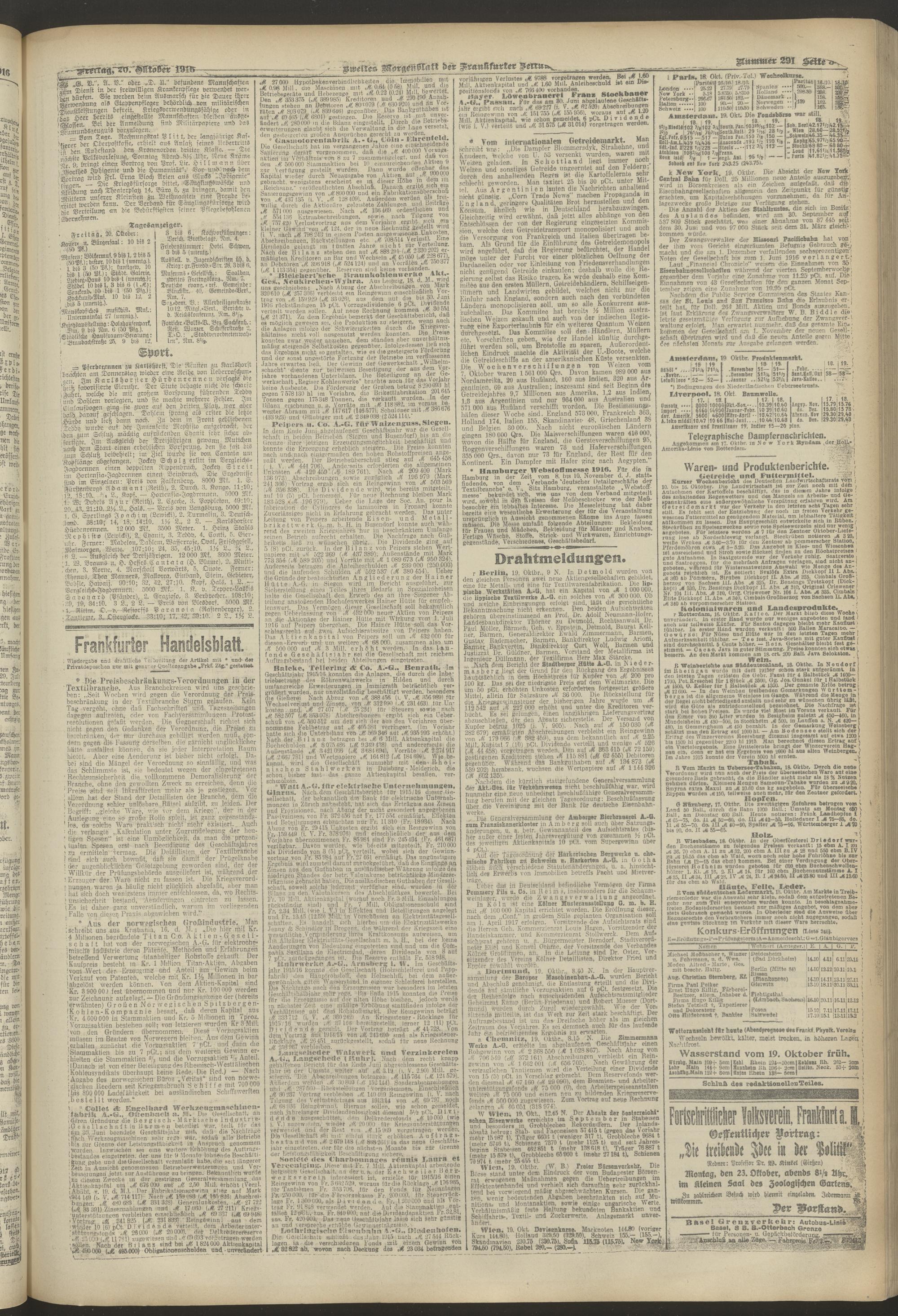 20.10.1916 = Nr. 291. Zweites Morgenblatt