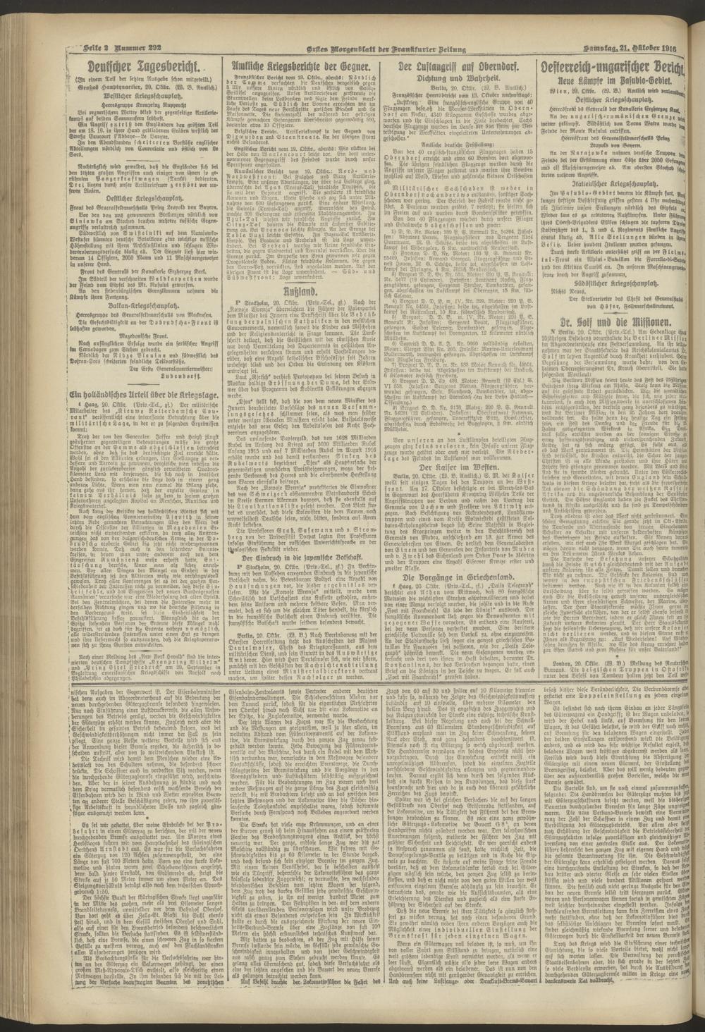 21.10.1916 = Nr. 292. Erstes Morgenblatt