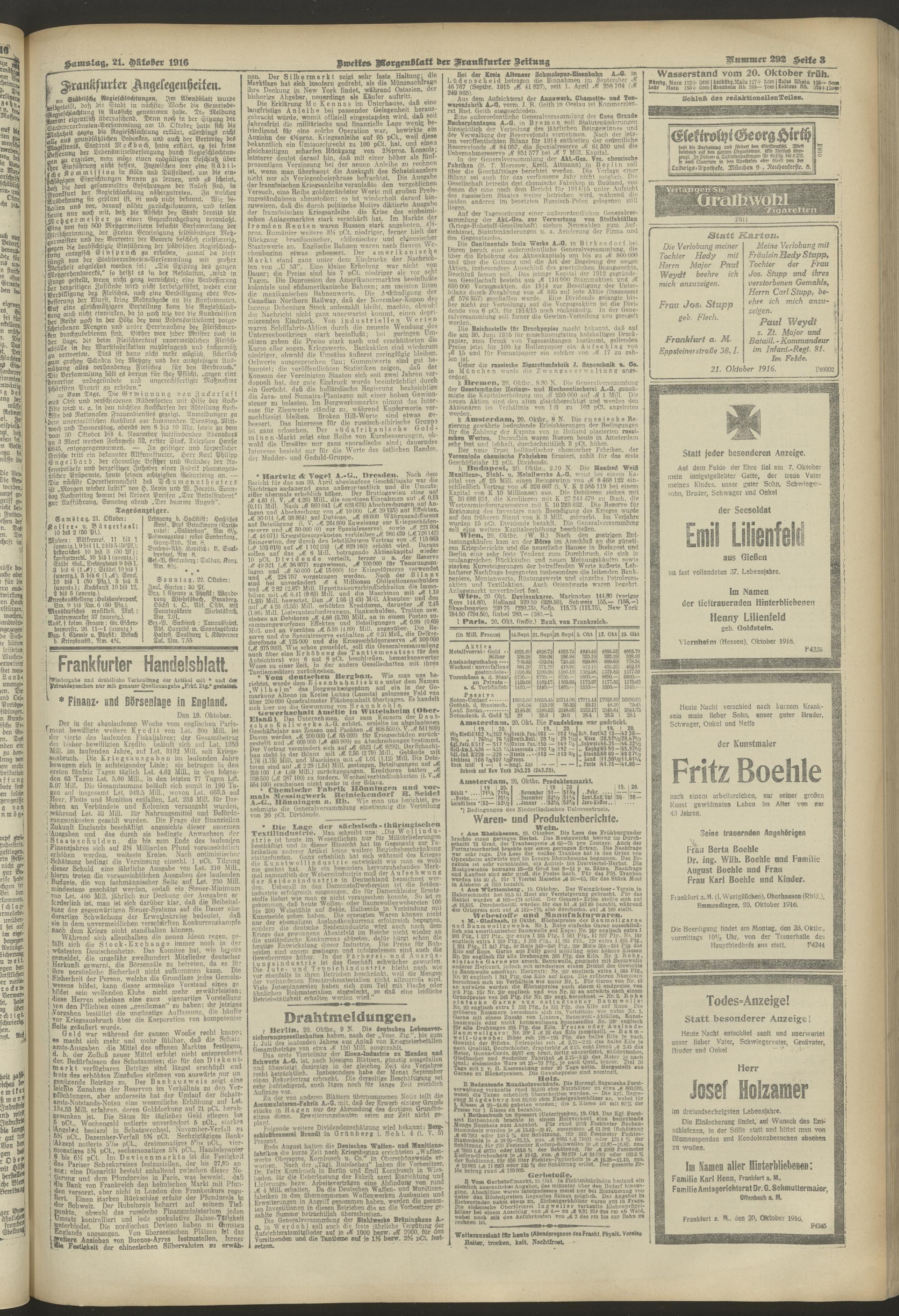 21.10.1916 = Nr. 292. Zweites Morgenblatt
