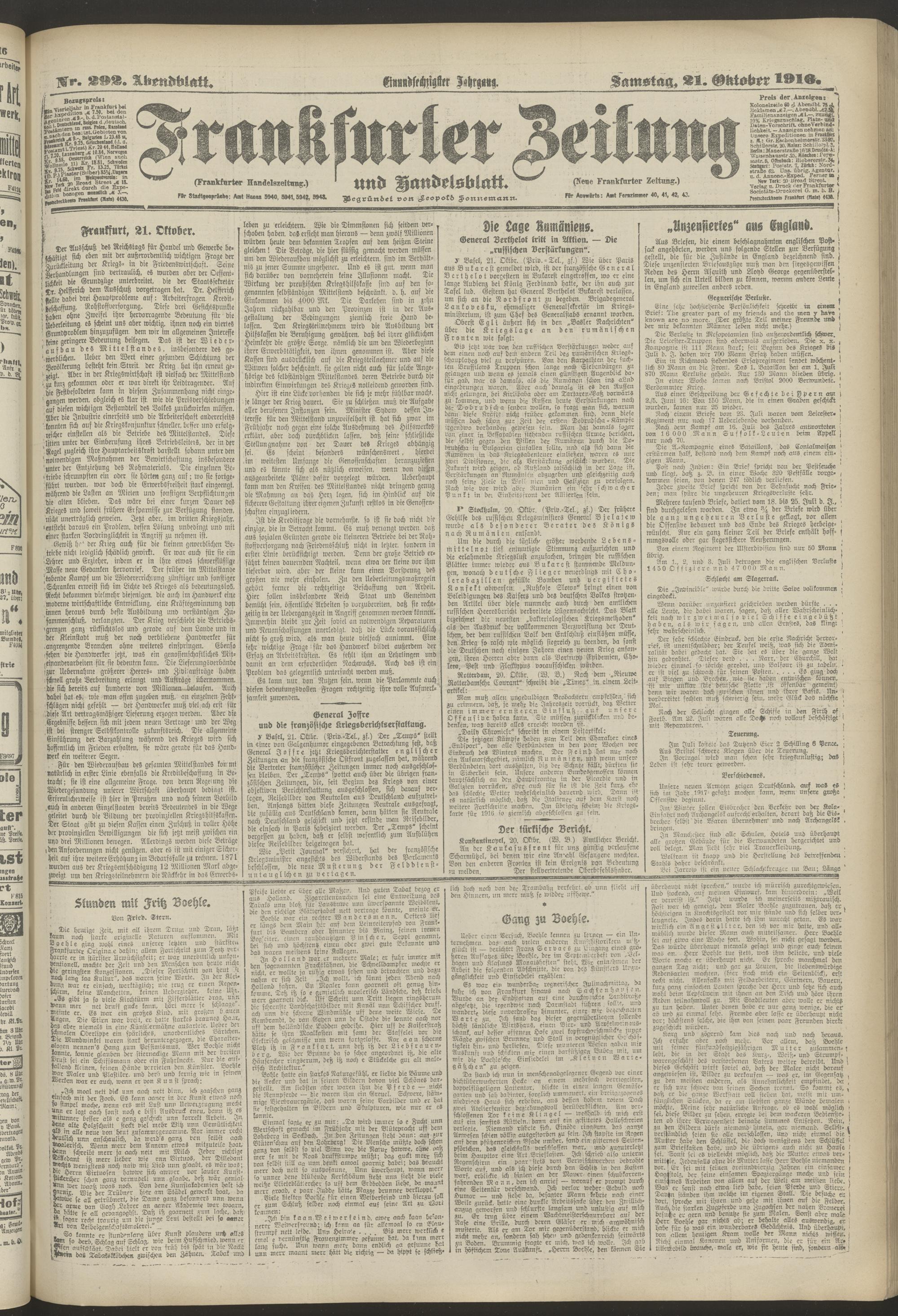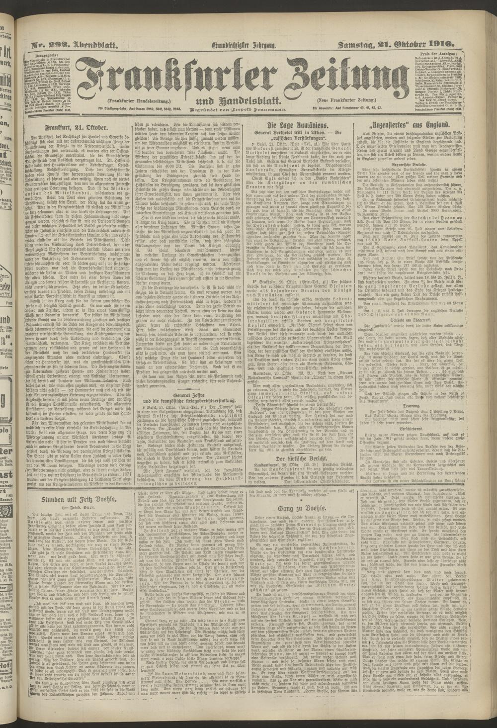 21.10.1916 = Nr. 292. Abendblatt
