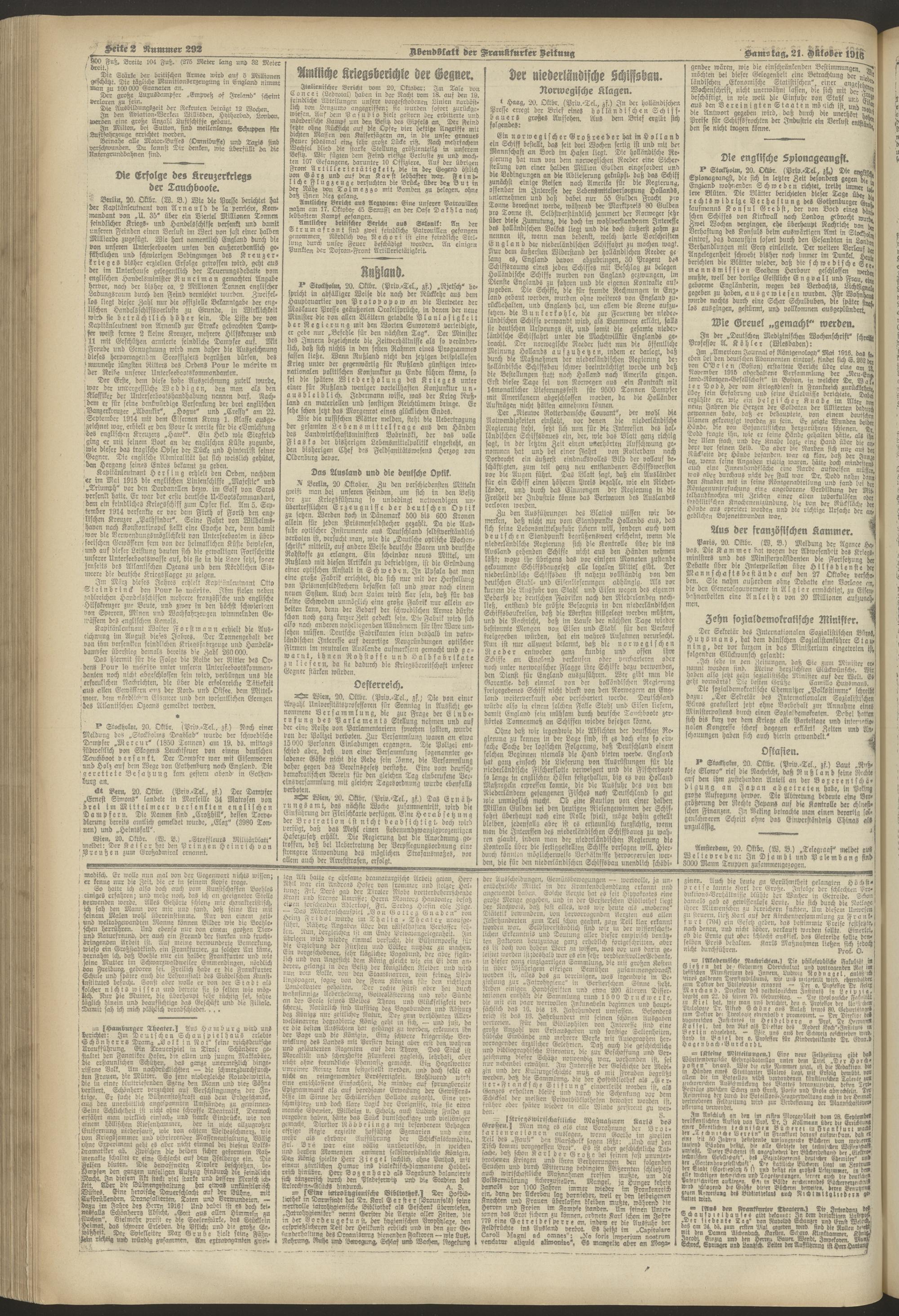 21.10.1916 = Nr. 292. Abendblatt