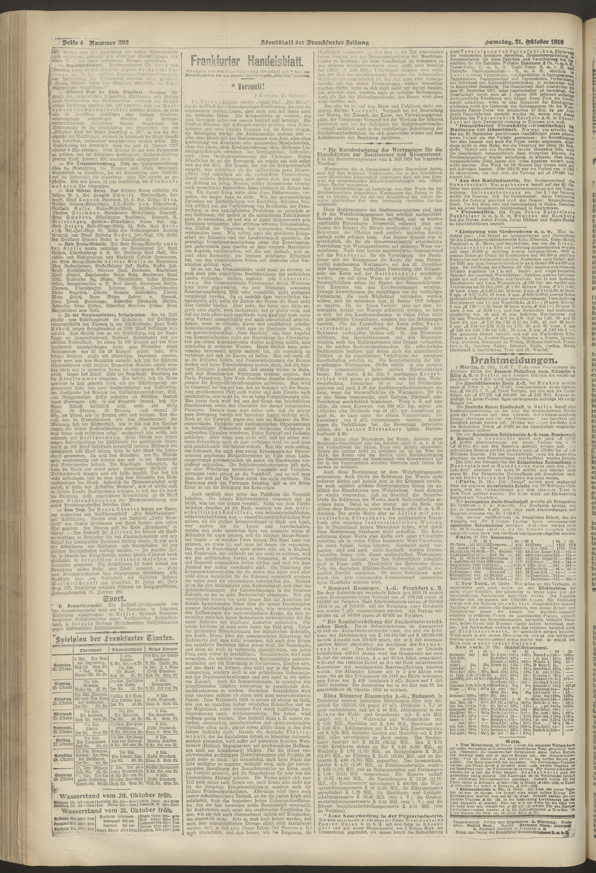 21.10.1916 = Nr. 292. Abendblatt