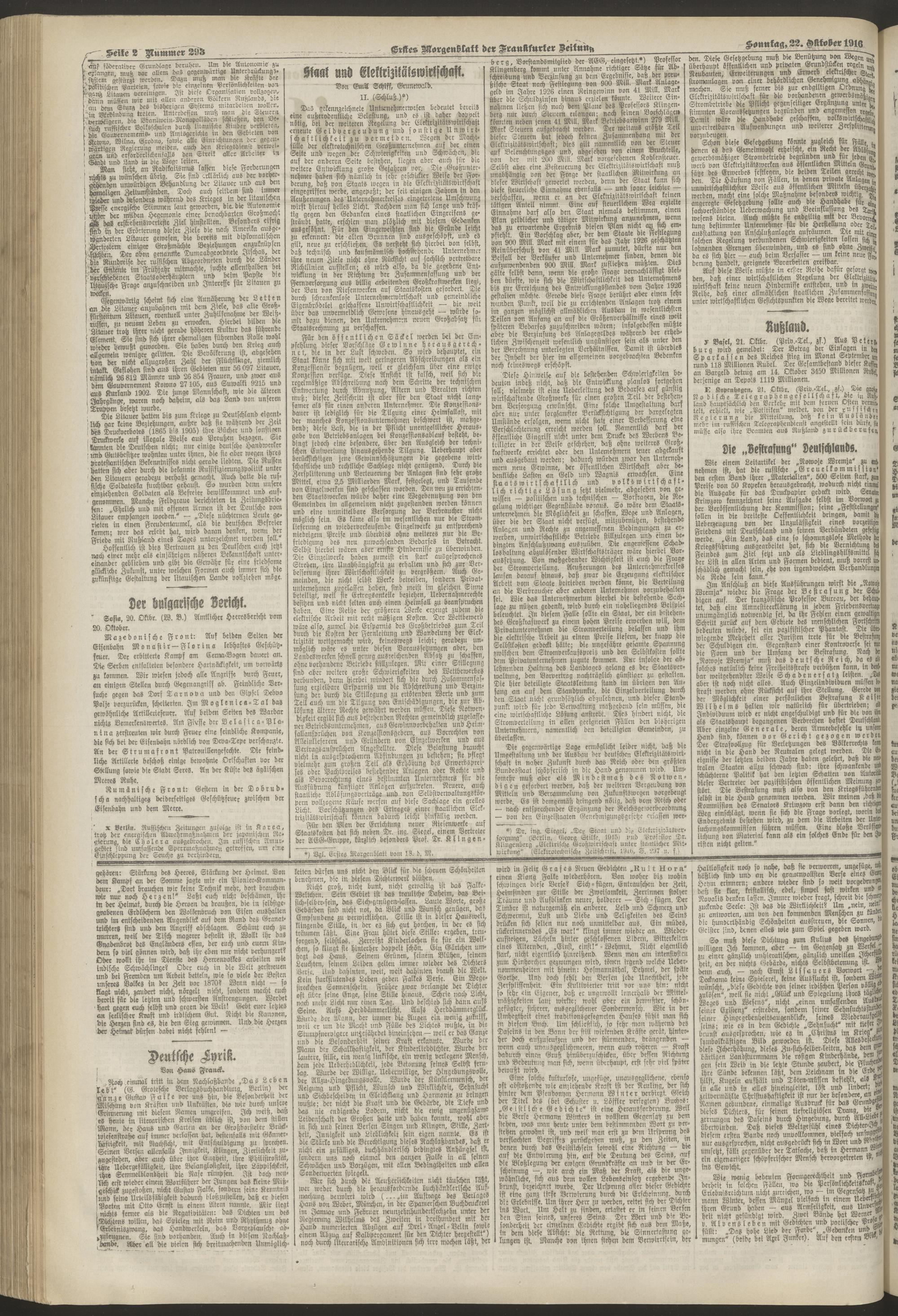 22.10.1916 = Nr. 293. Erstes Morgenblatt