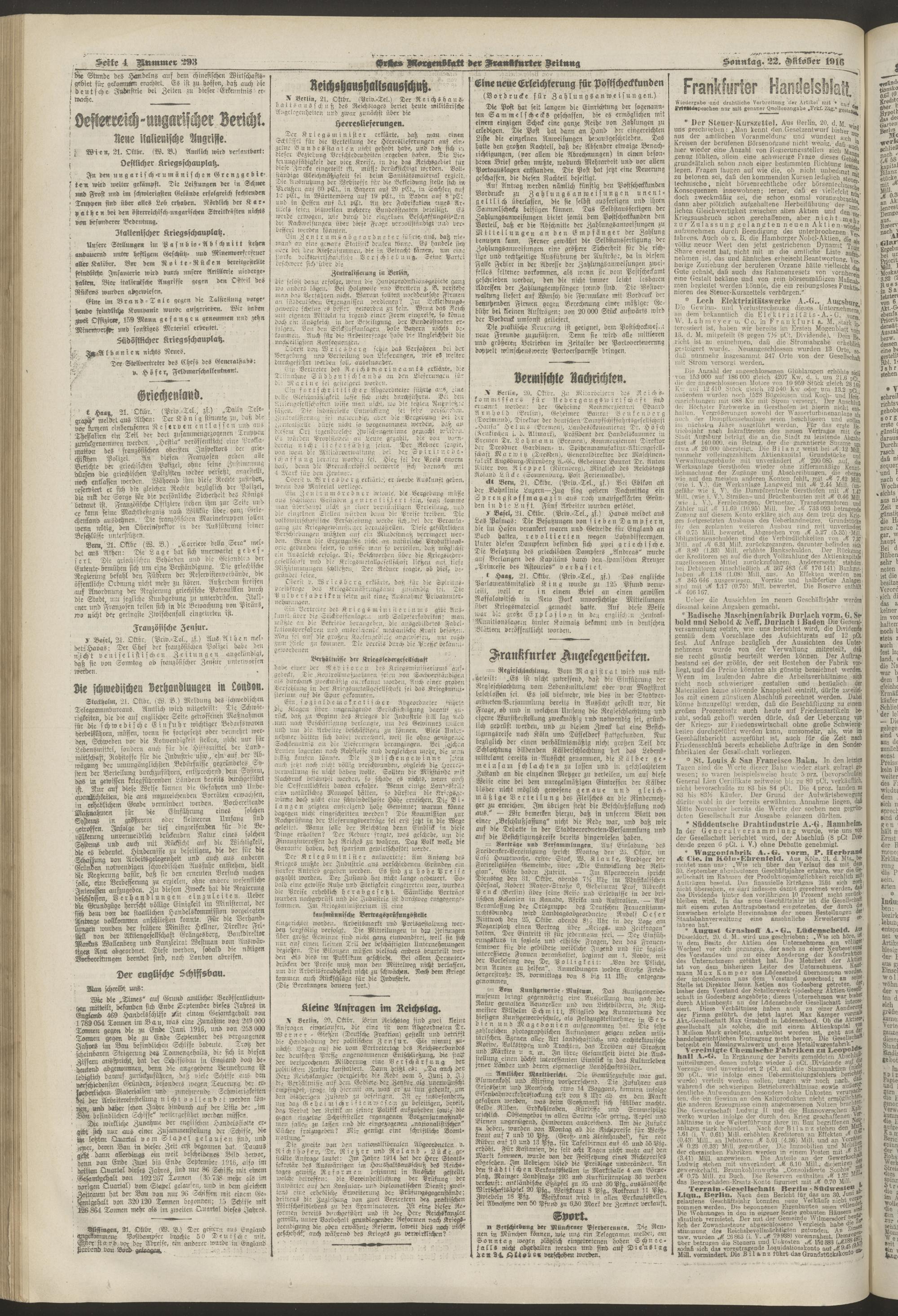 22.10.1916 = Nr. 293. Erstes Morgenblatt