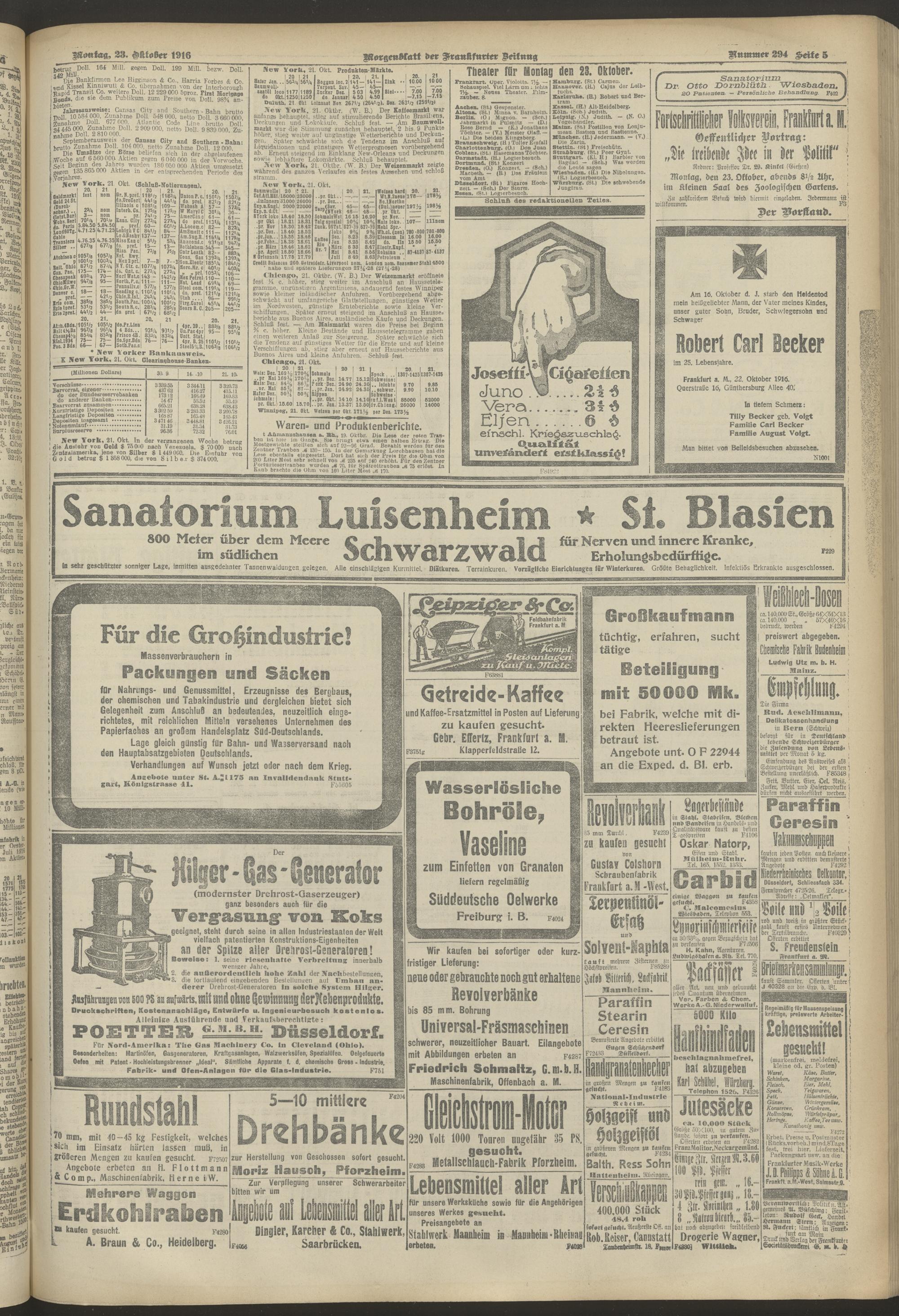 23.10.1916 = Nr. 294. Morgenblatt