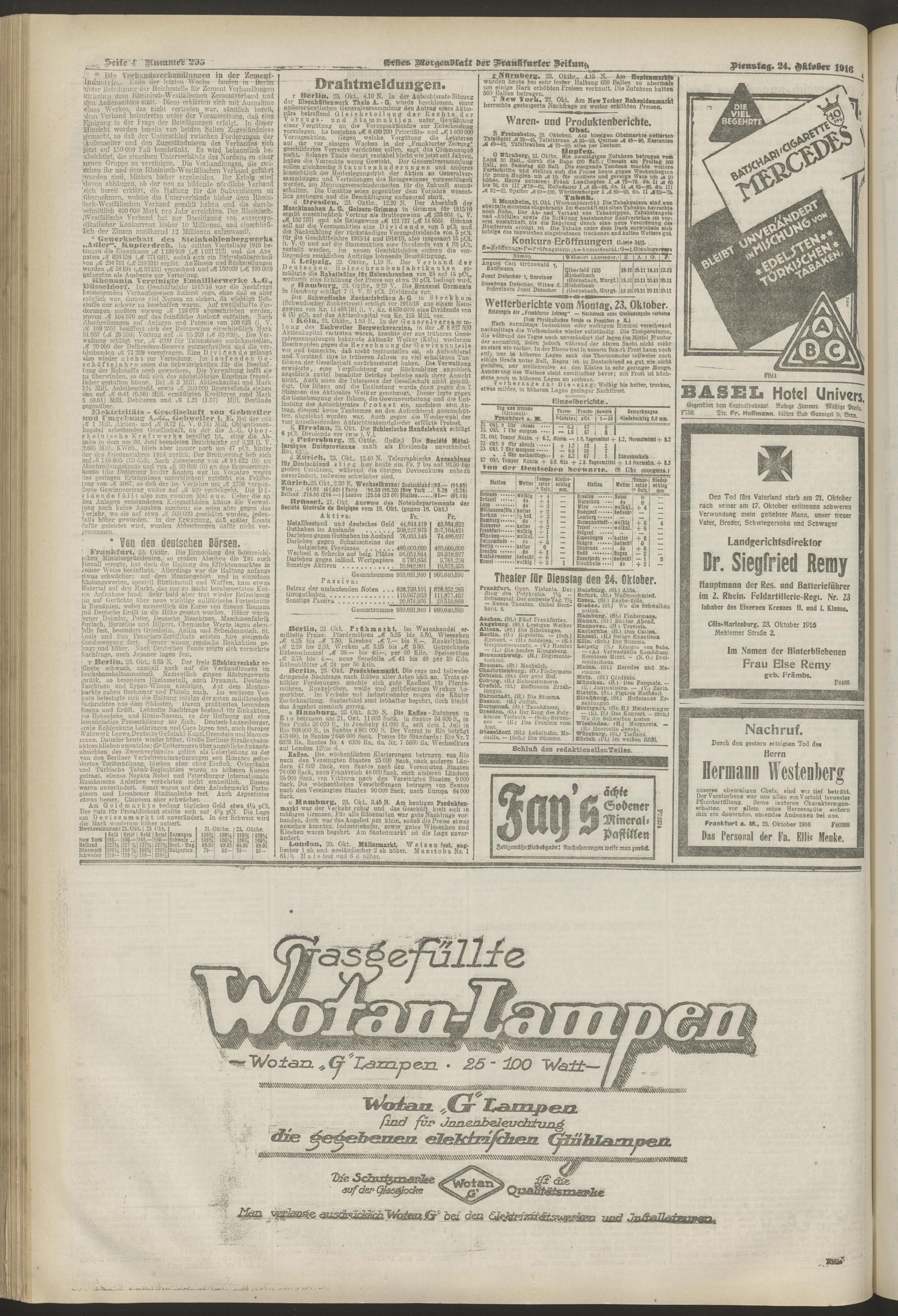 24.10.1916 = Nr. 295. Erstes Morgenblatt