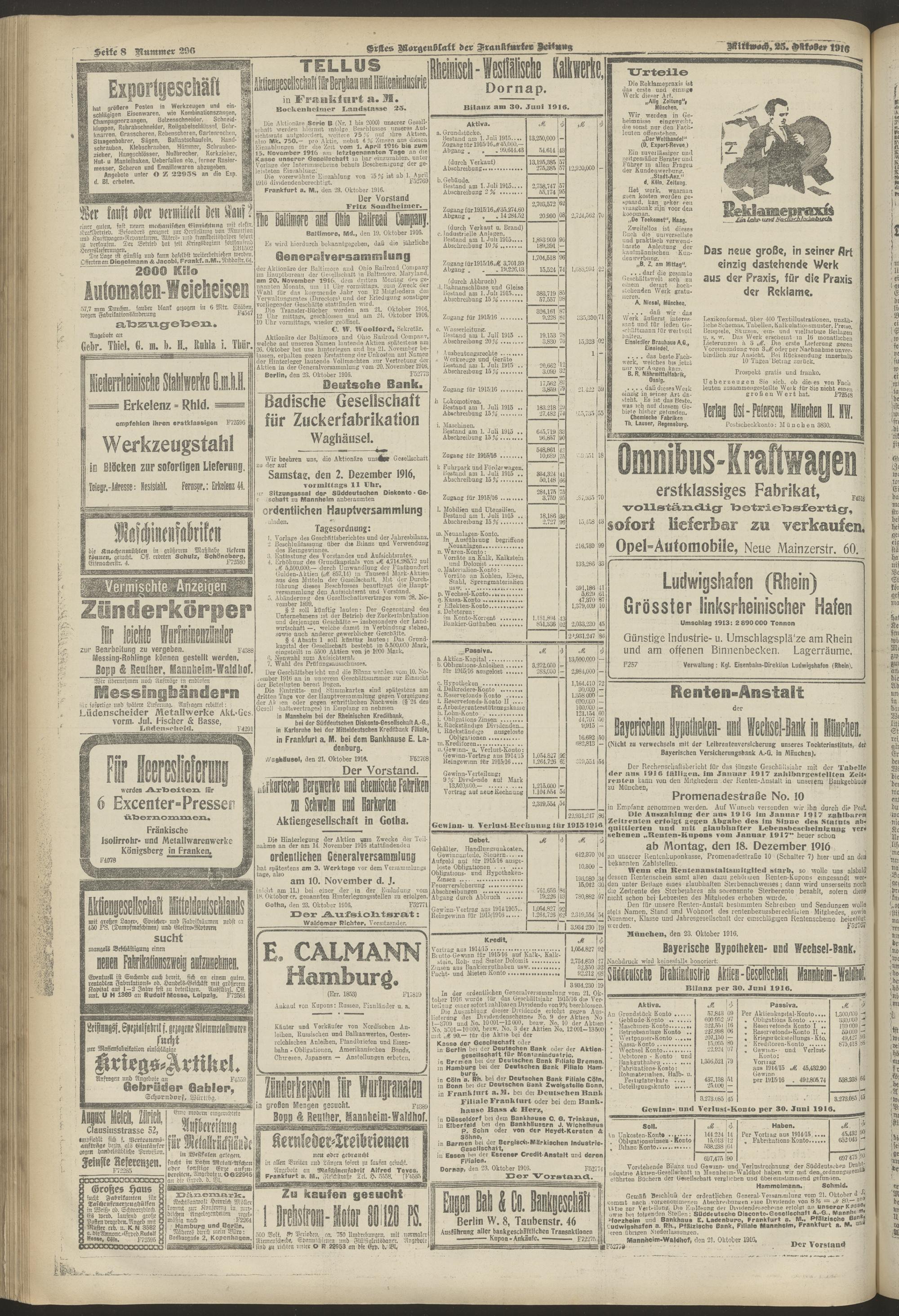 25.10.1916 = Nr. 296. Erstes Morgenblatt
