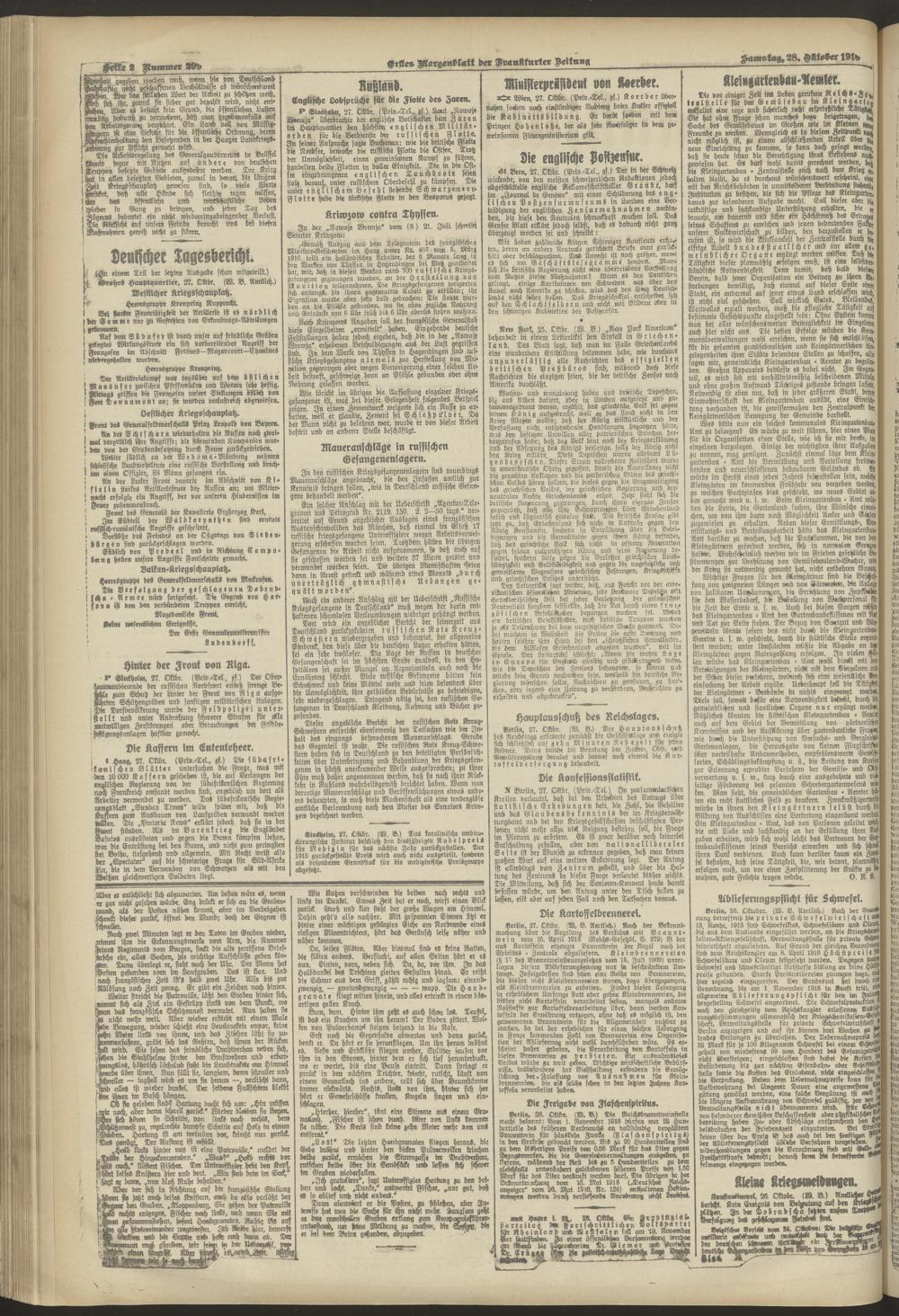28.10.1916 = Nr. 299. Erstes Morgenblatt