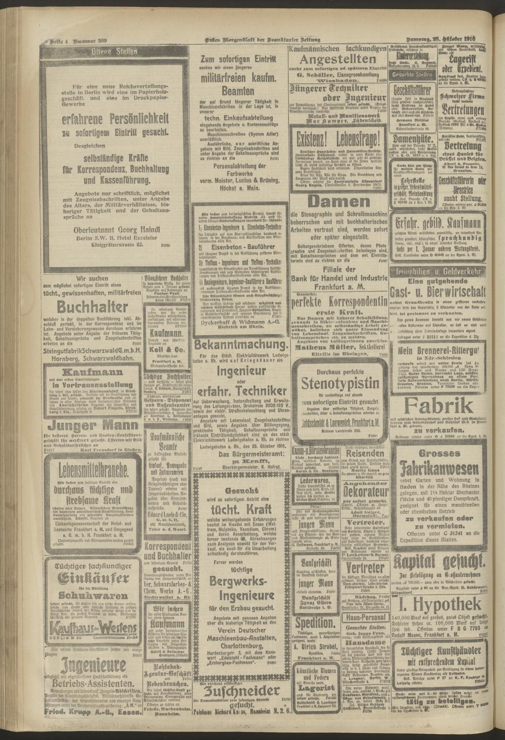 28.10.1916 = Nr. 299. Erstes Morgenblatt