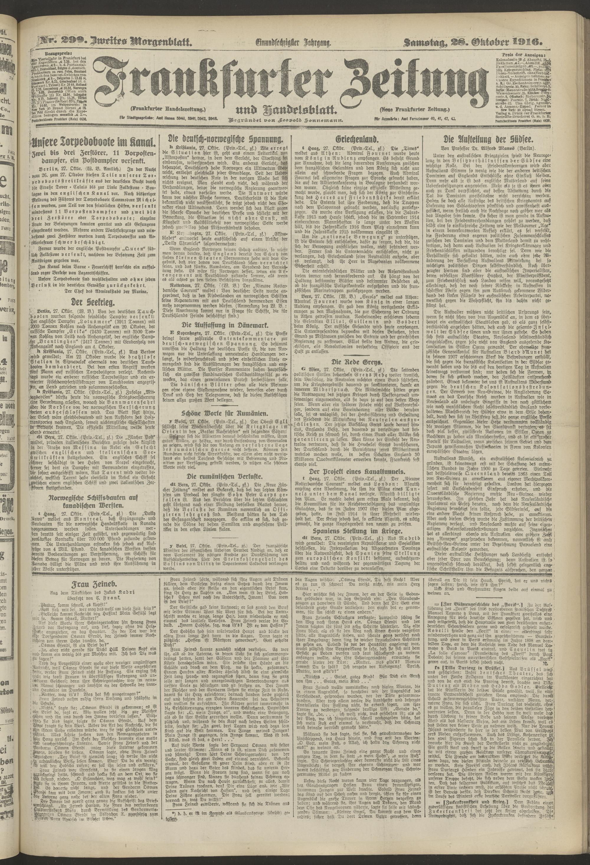 28.10.1916 = Nr. 299. Zweites Morgenblatt