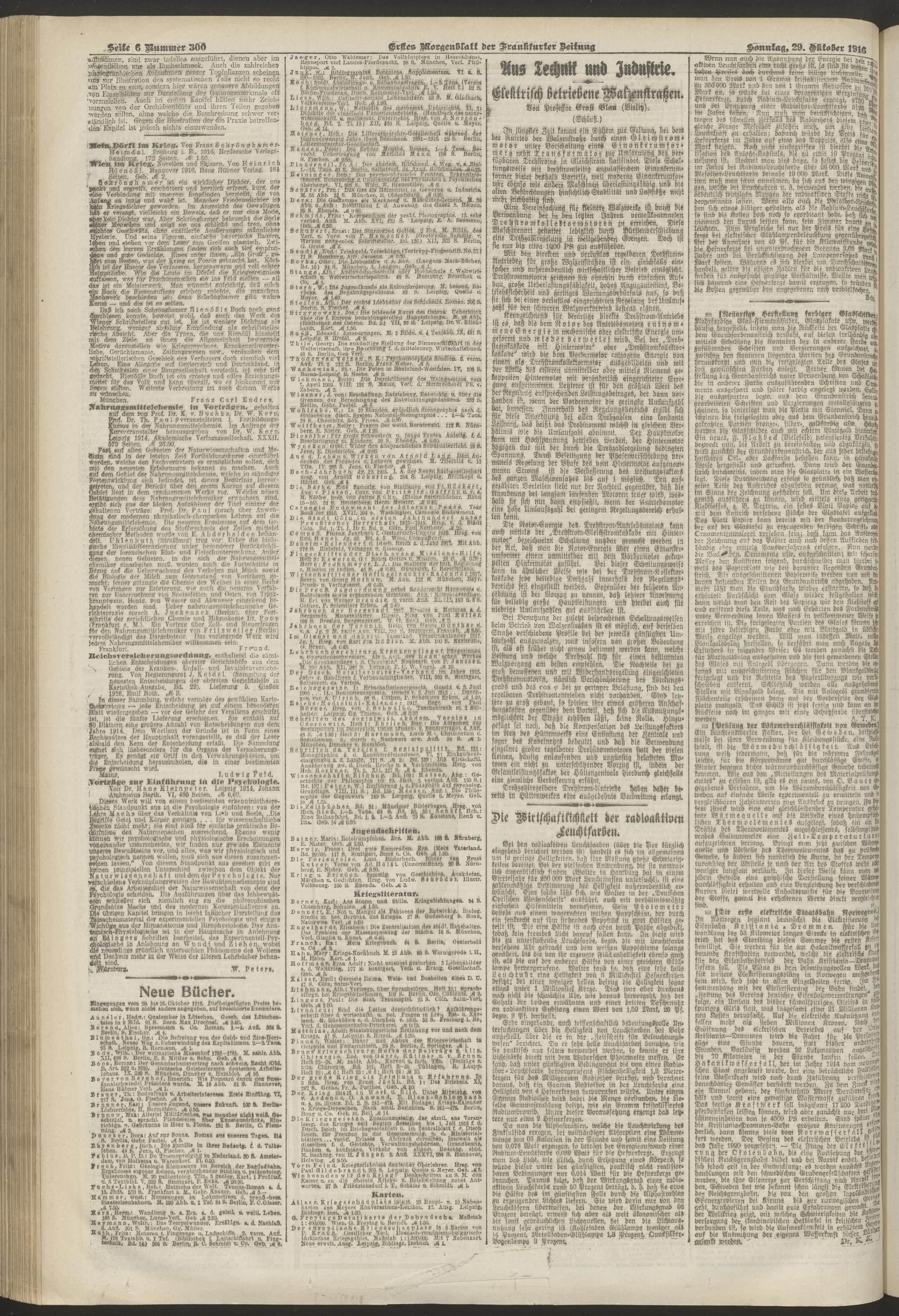 29.10.1916 = Nr. 300. Erstes Morgenblatt