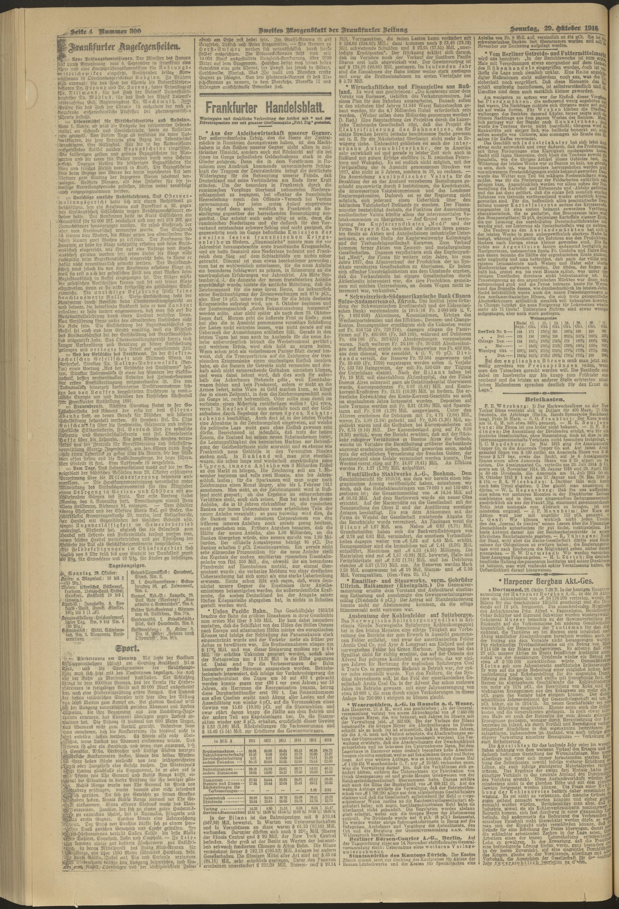 29.10.1916 = Nr. 300. Zweites Morgenblatt