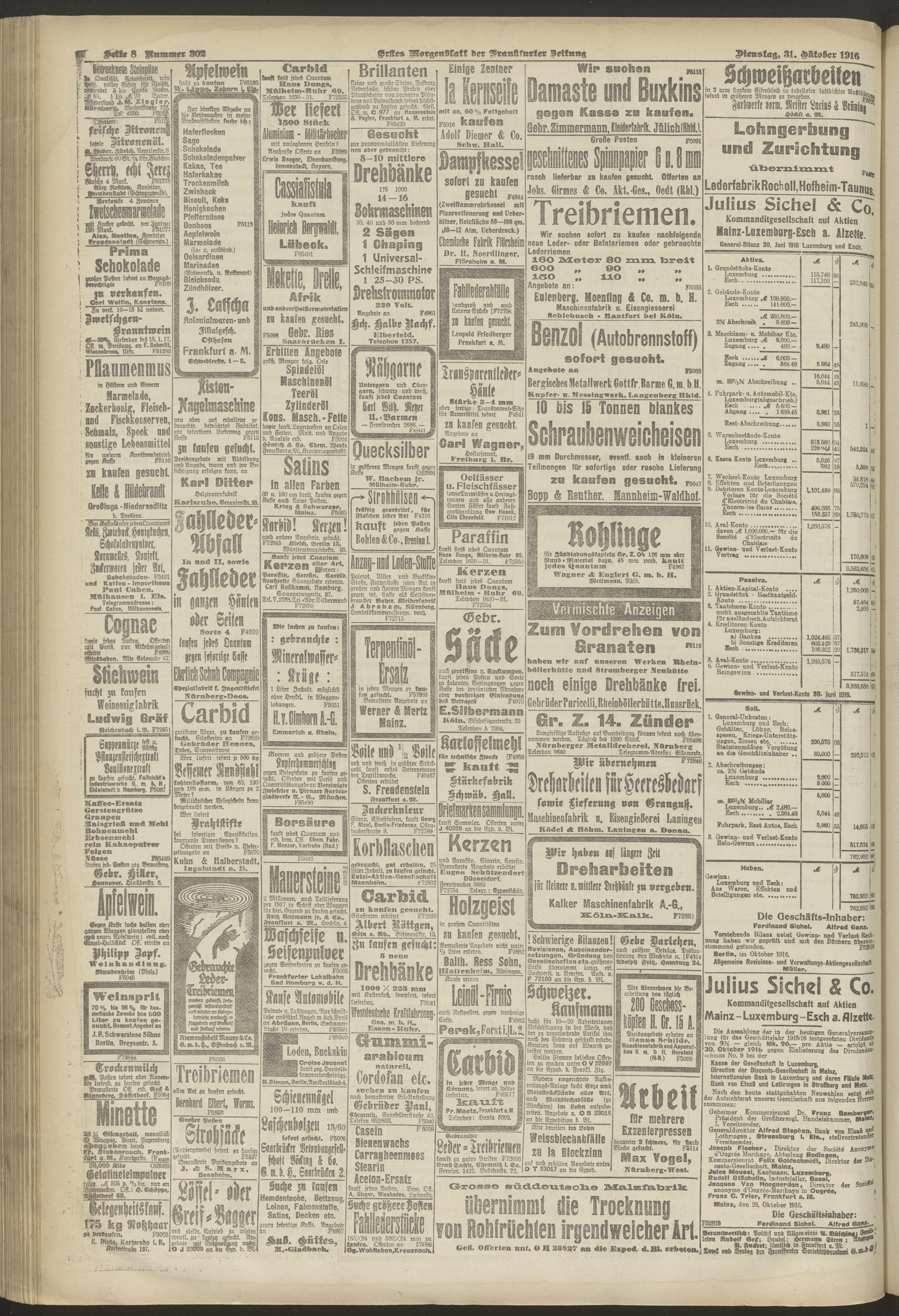 30.10.1916 = Nr. 301. Erstes Morgenblatt