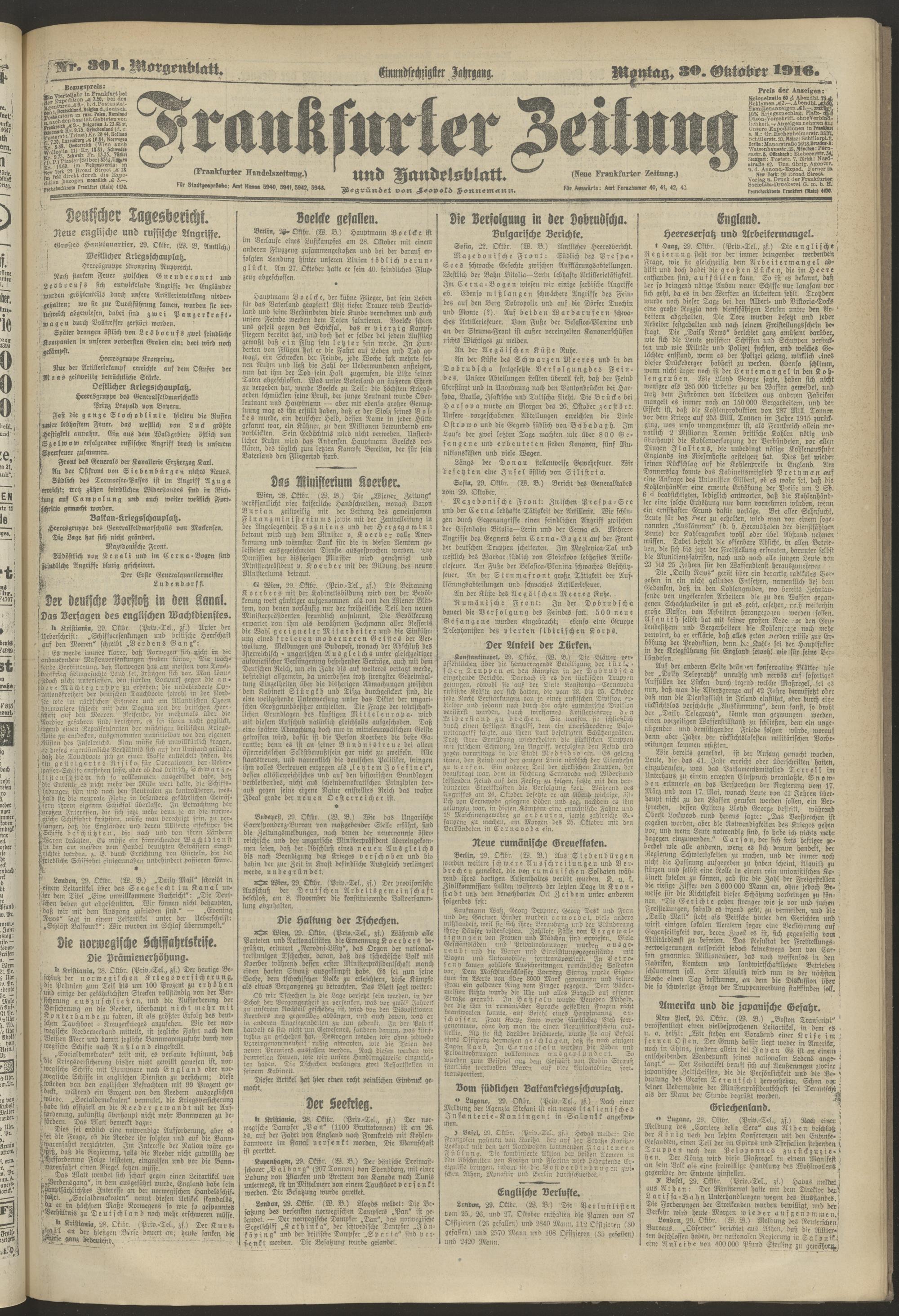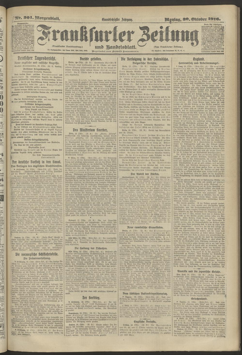 30.10.1916 = Nr. 301. Morgenblatt