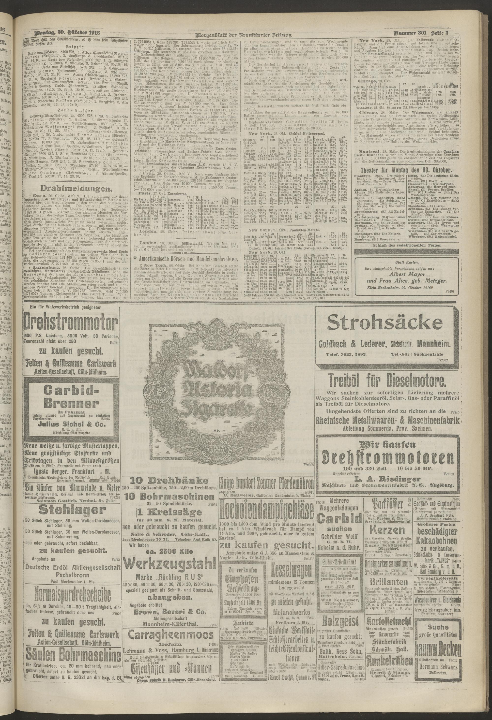 30.10.1916 = Nr. 301. Morgenblatt