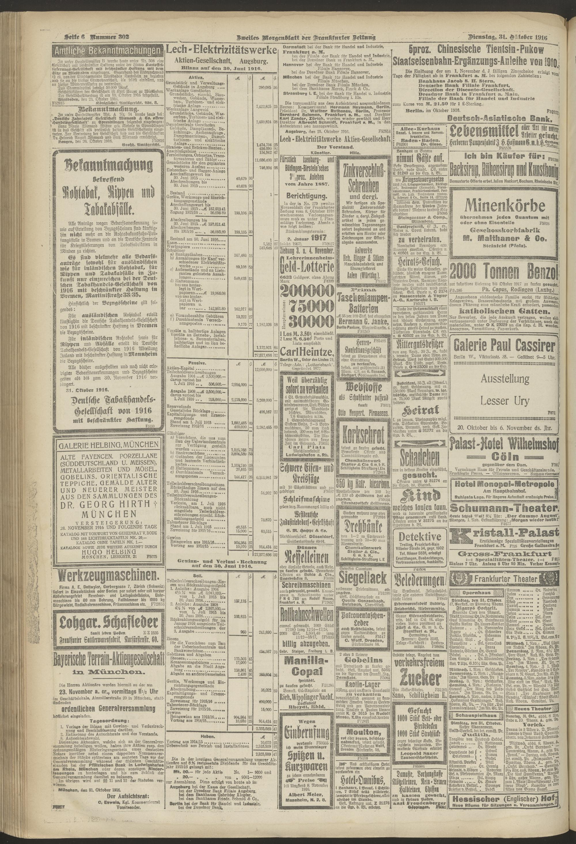 31.10.1916 = Nr. 302. Zweites Morgenblatt