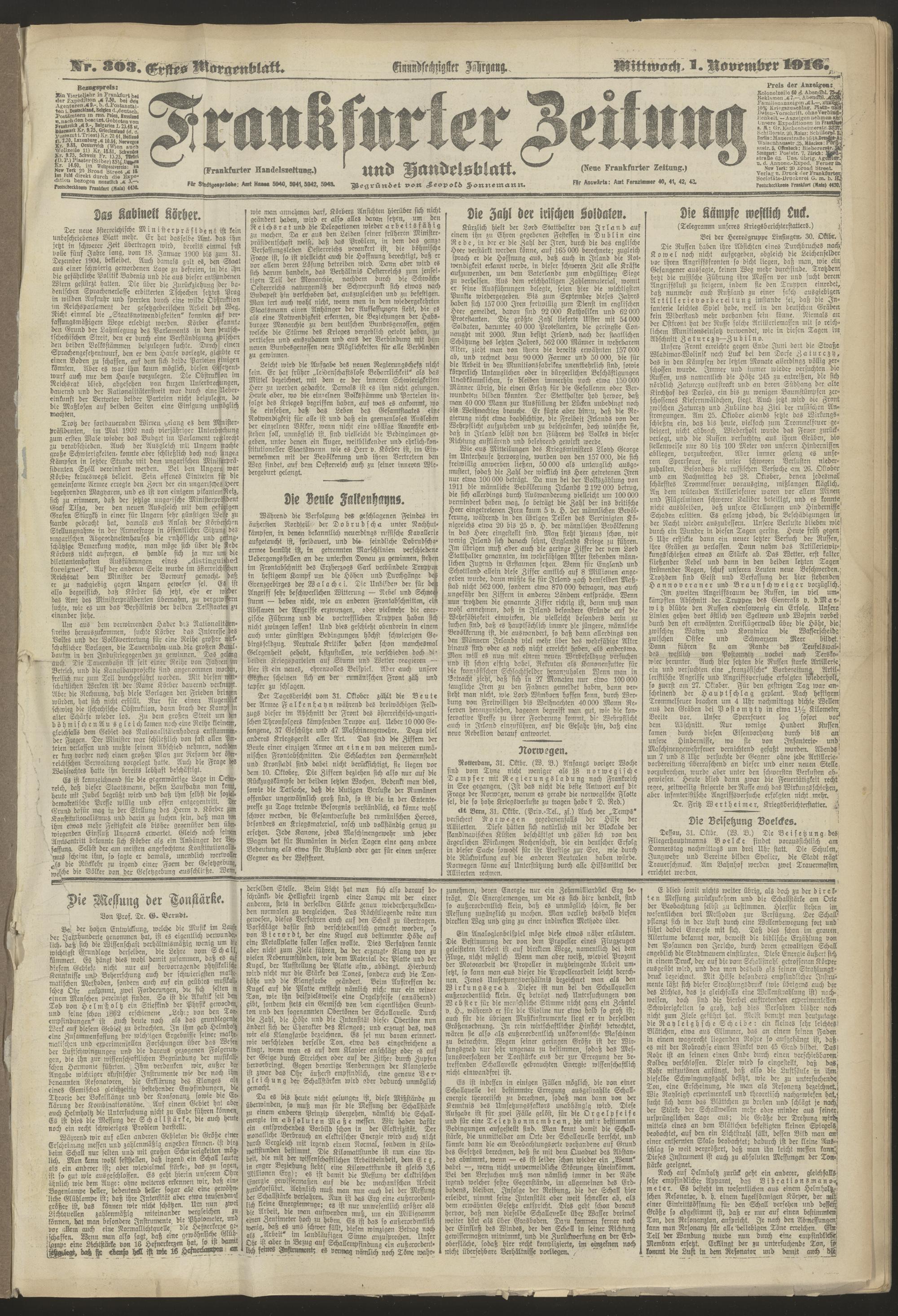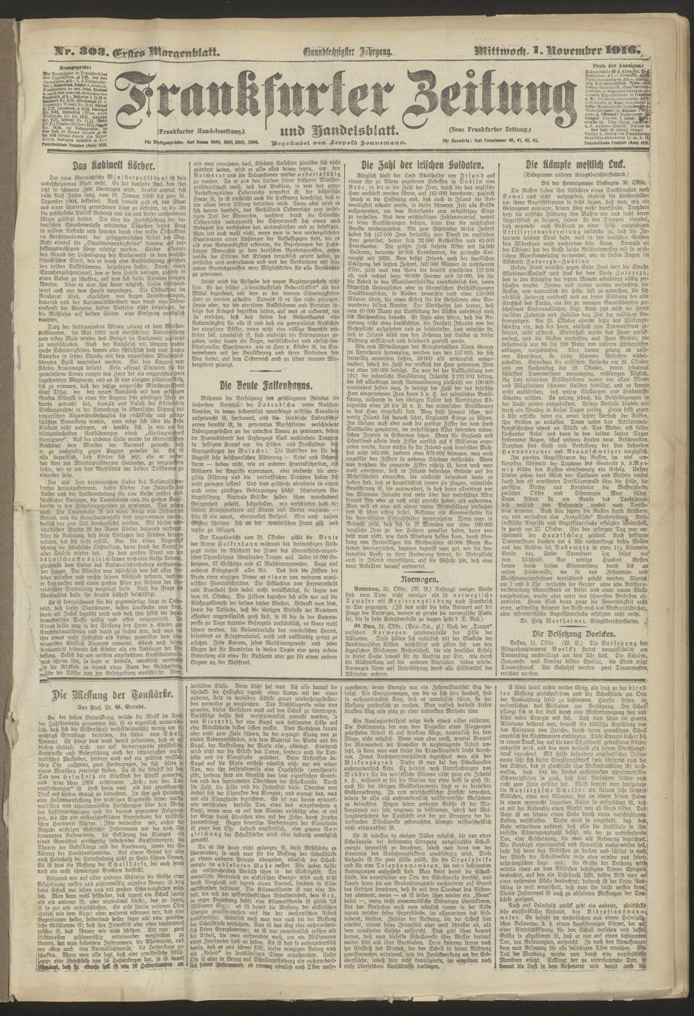 01.11.1916 = Nr. 303. Erstes Morgenblatt