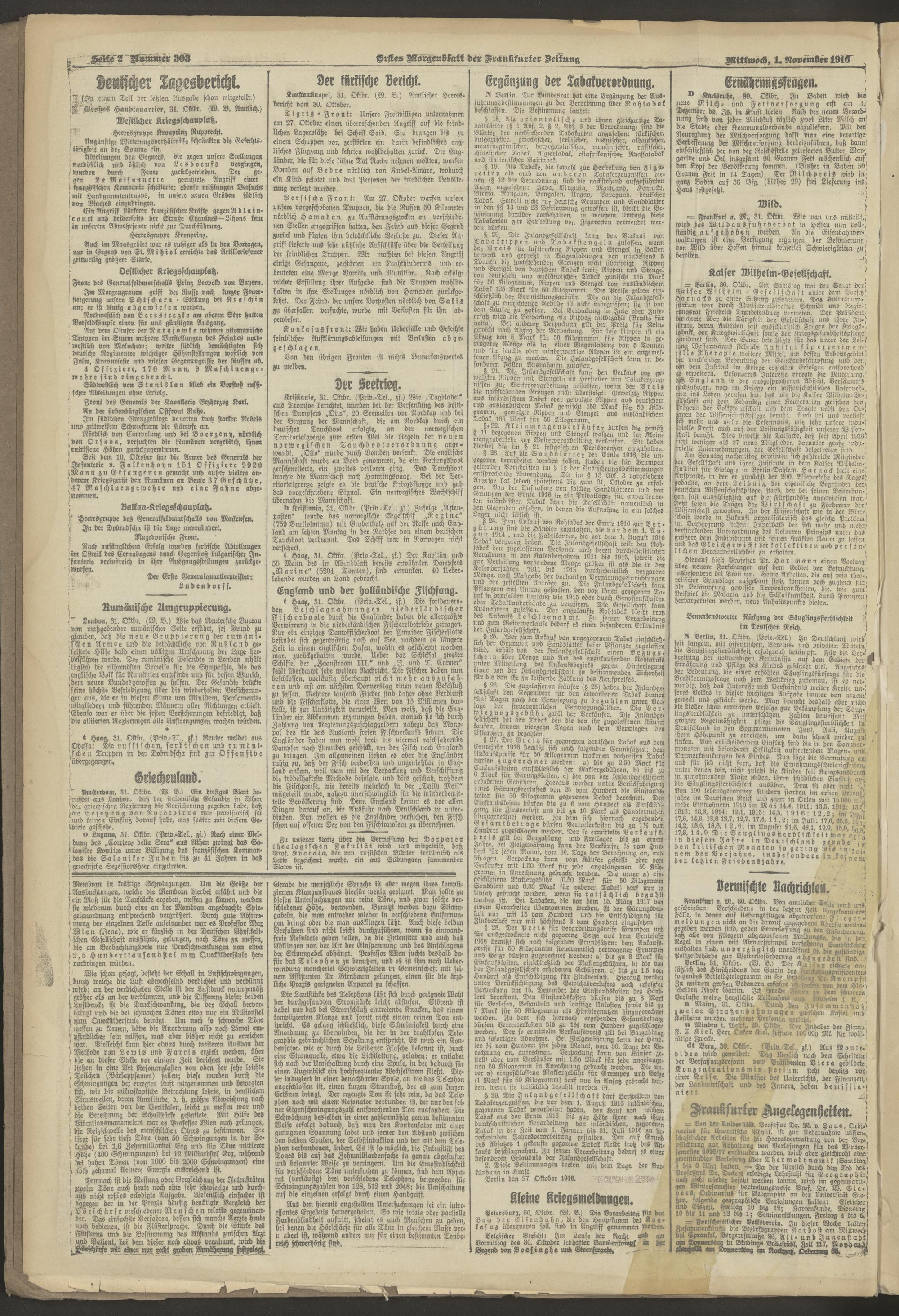 01.11.1916 = Nr. 303. Erstes Morgenblatt
