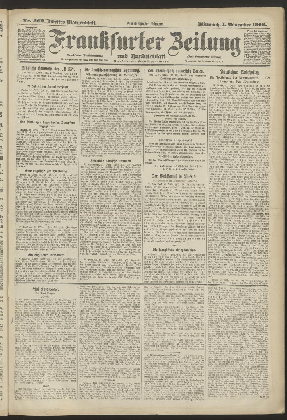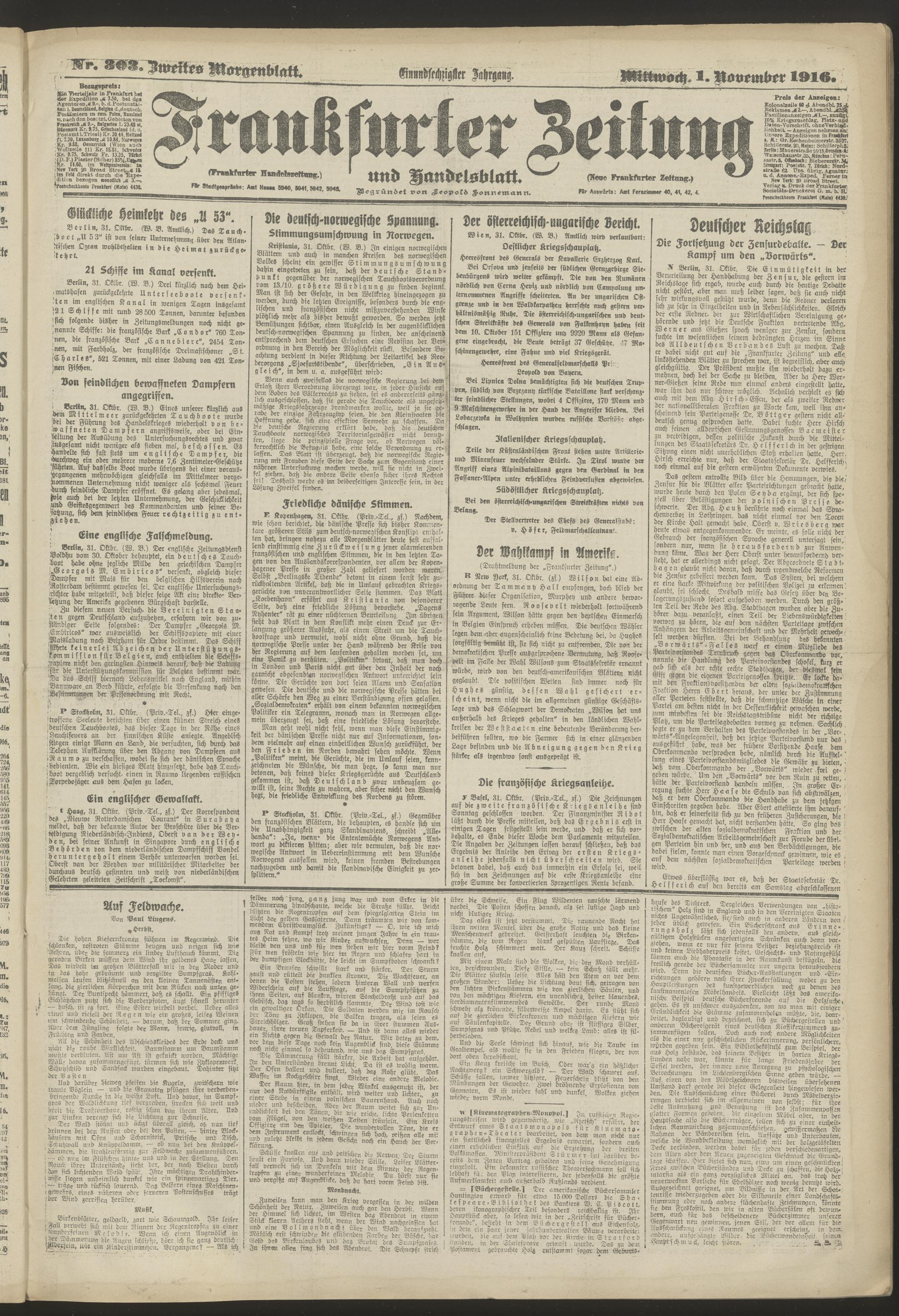 01.11.1916 = Nr. 303. Zweites Morgenblatt