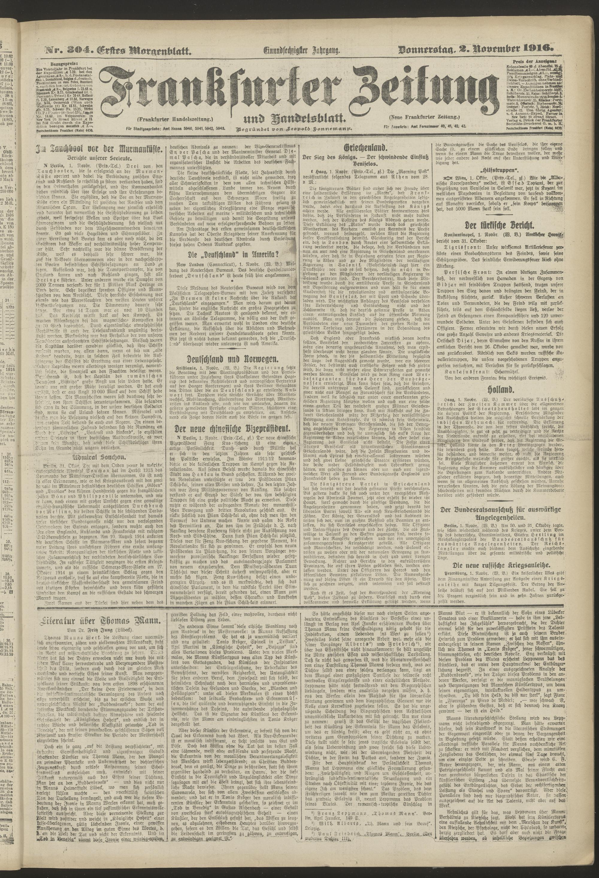 02.11.1916 = Nr. 304. Erstes Morgenblatt