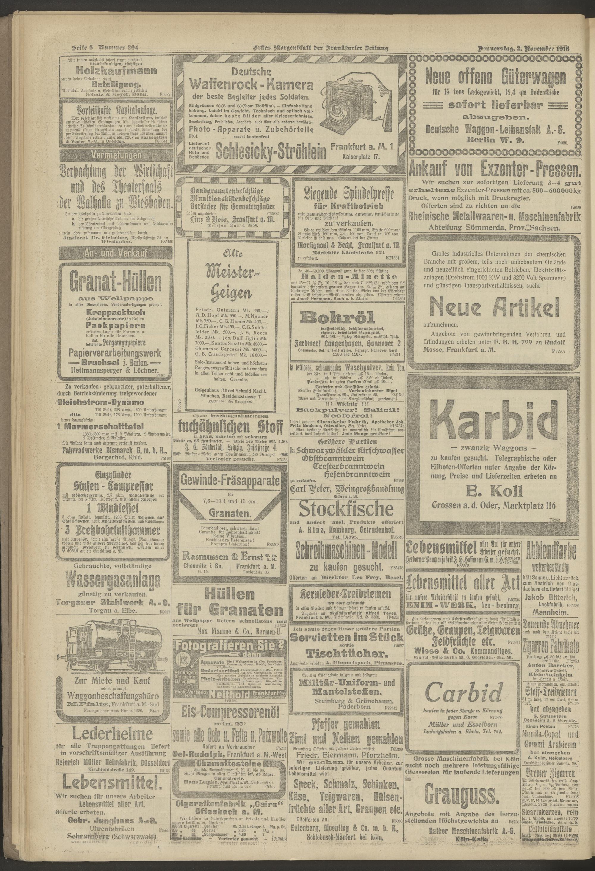 02.11.1916 = Nr. 304. Erstes Morgenblatt