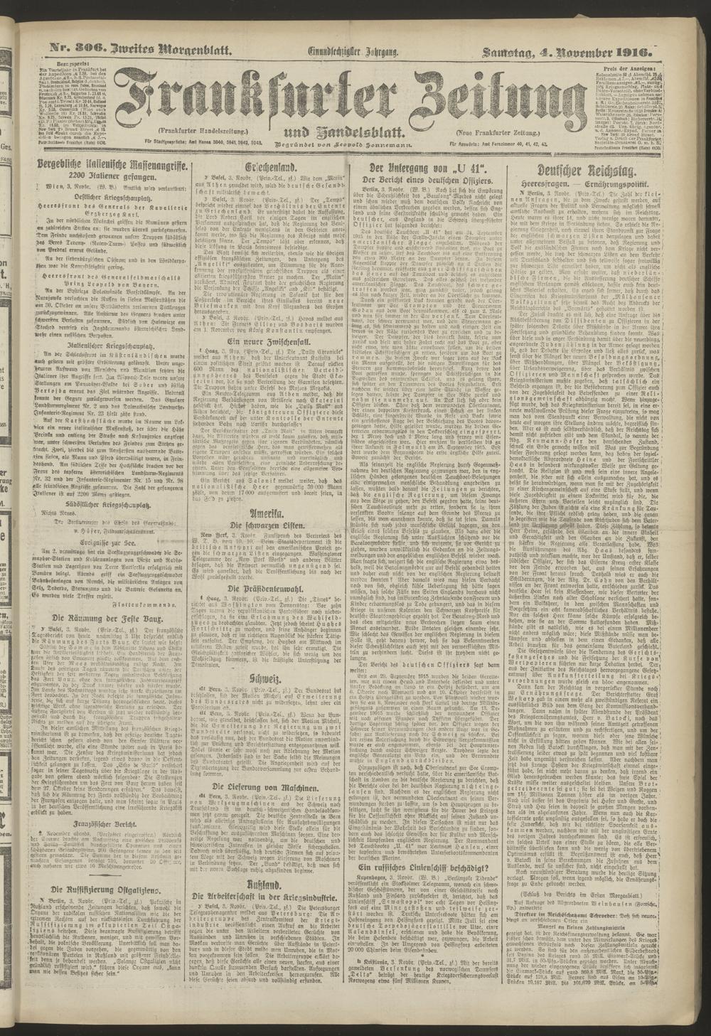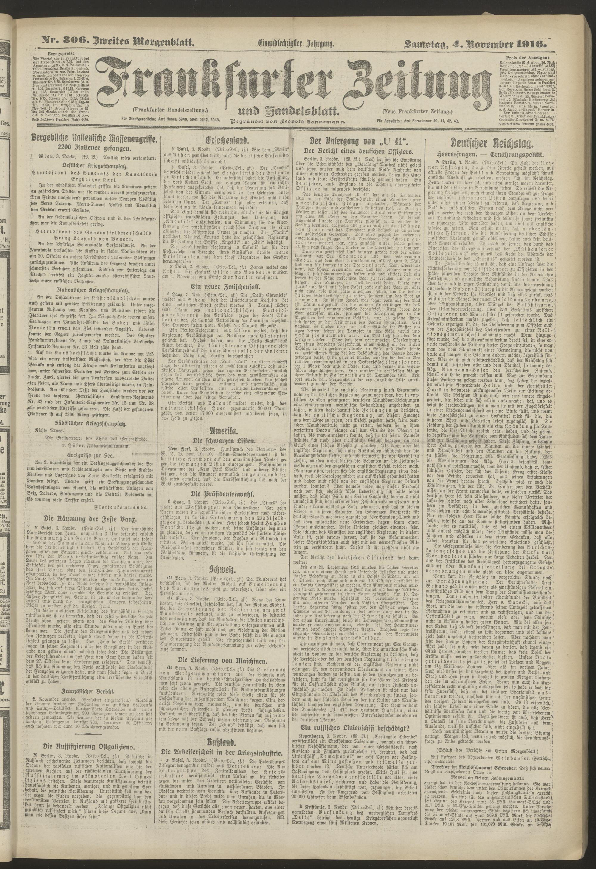 04.11.1916 = Nr. 306. Zweites Morgenblatt