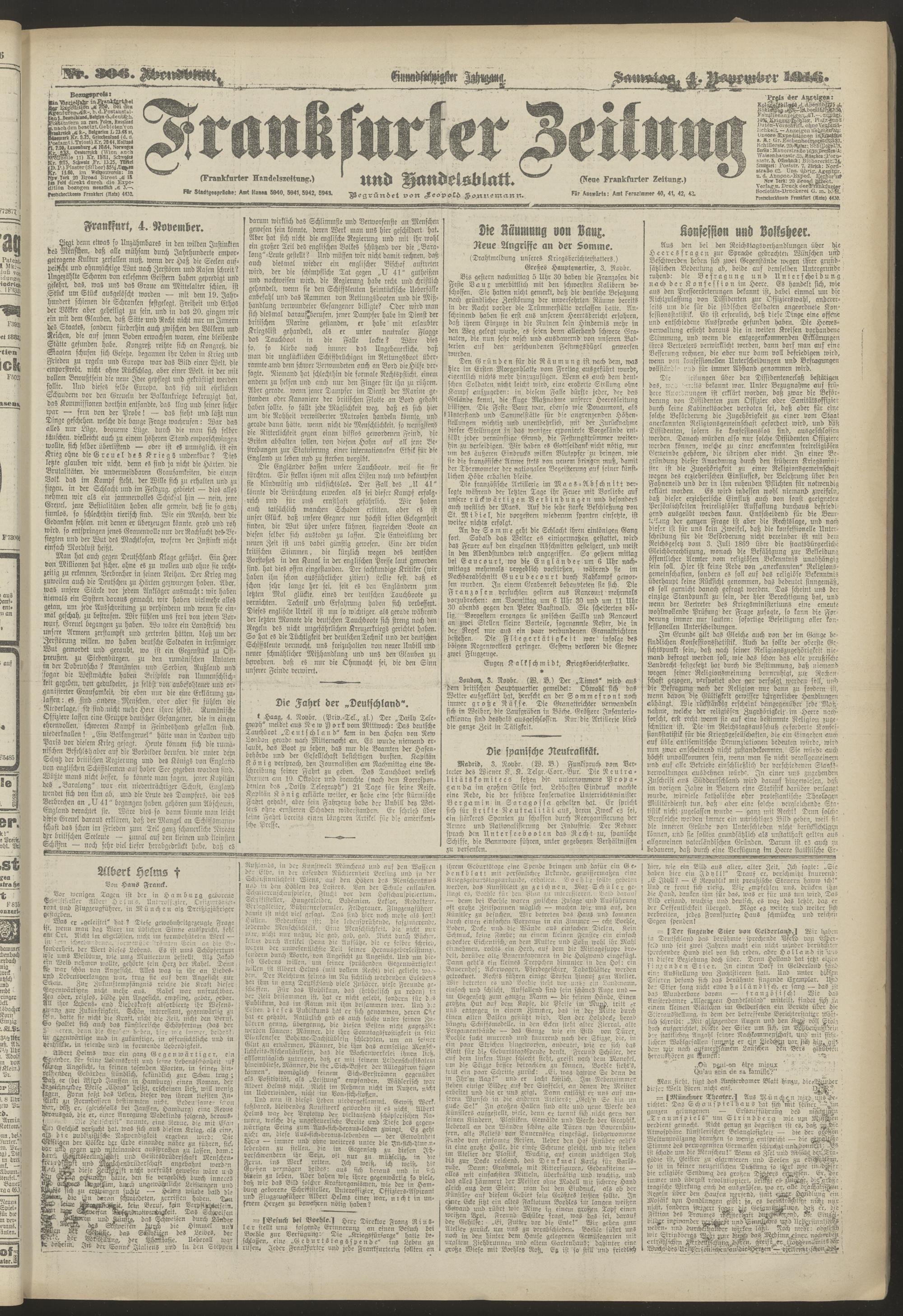 04.11.1916 = Nr. 306. Abendblatt