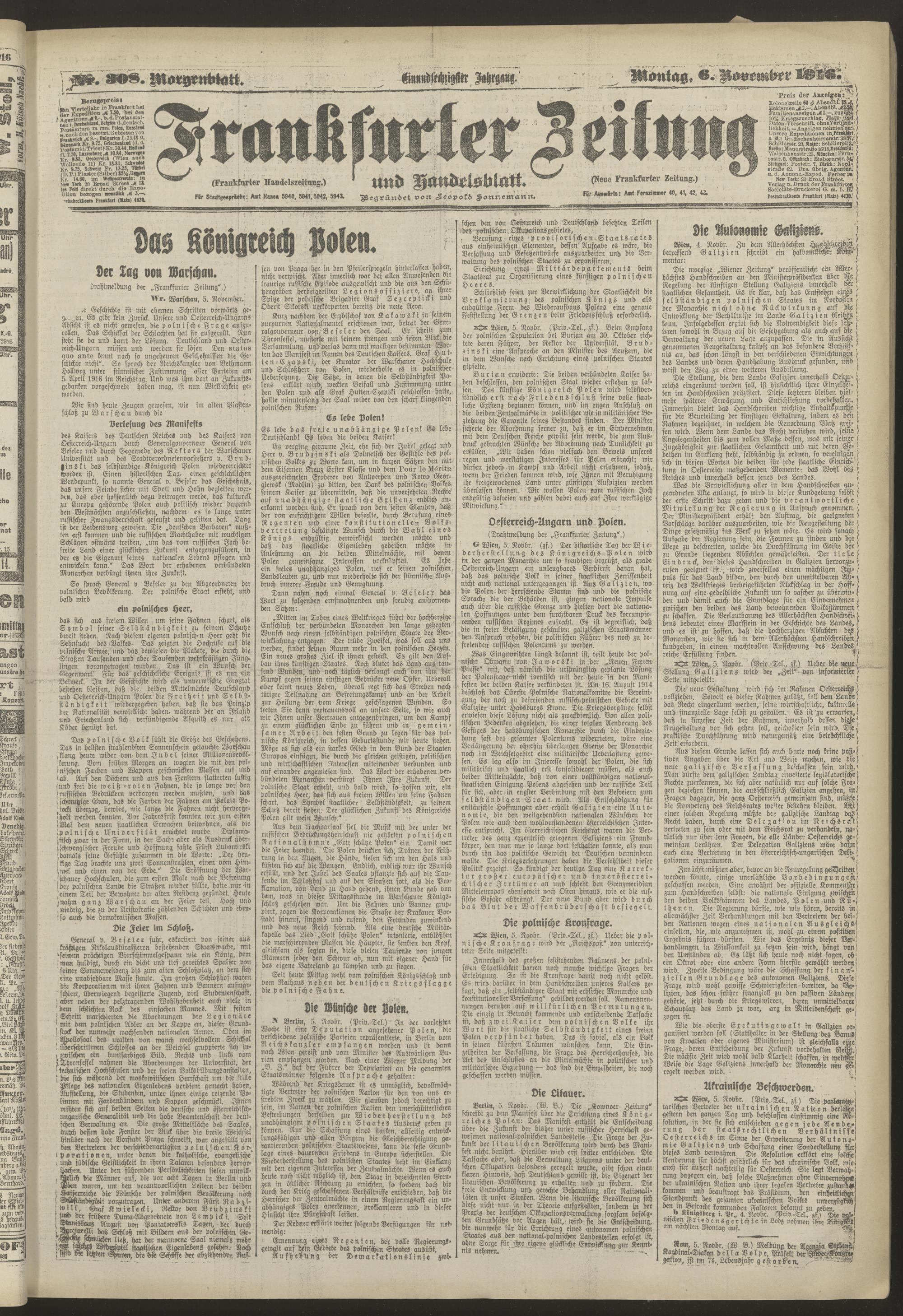 06.11.1916 = Nr. 308. Morgenblatt