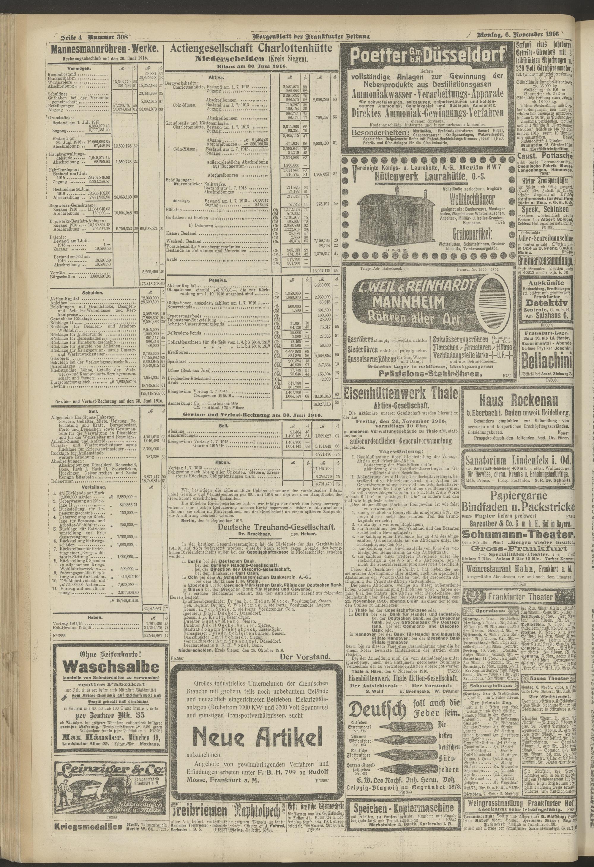 06.11.1916 = Nr. 308. Morgenblatt