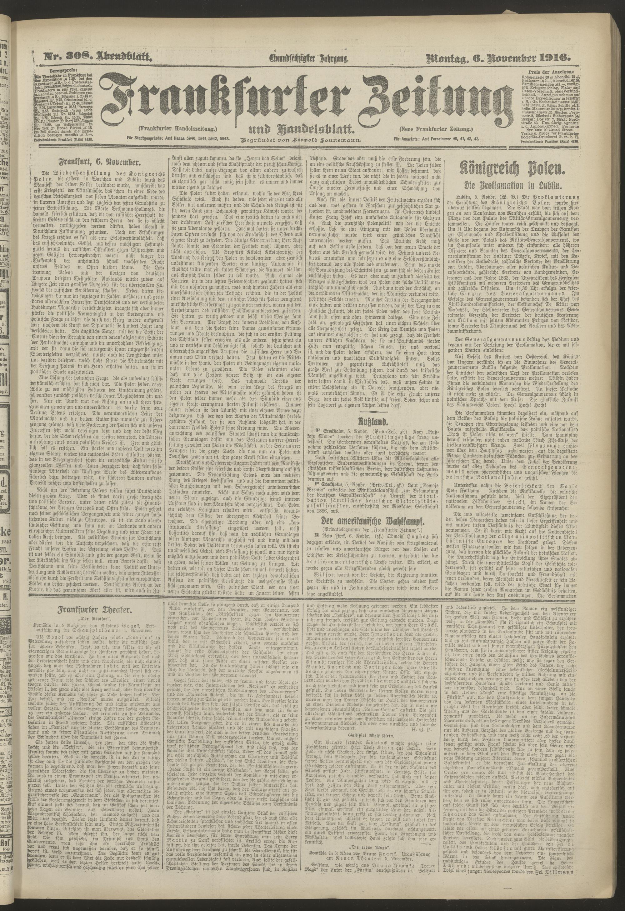 06.11.1916 = Nr. 308. Abendblatt