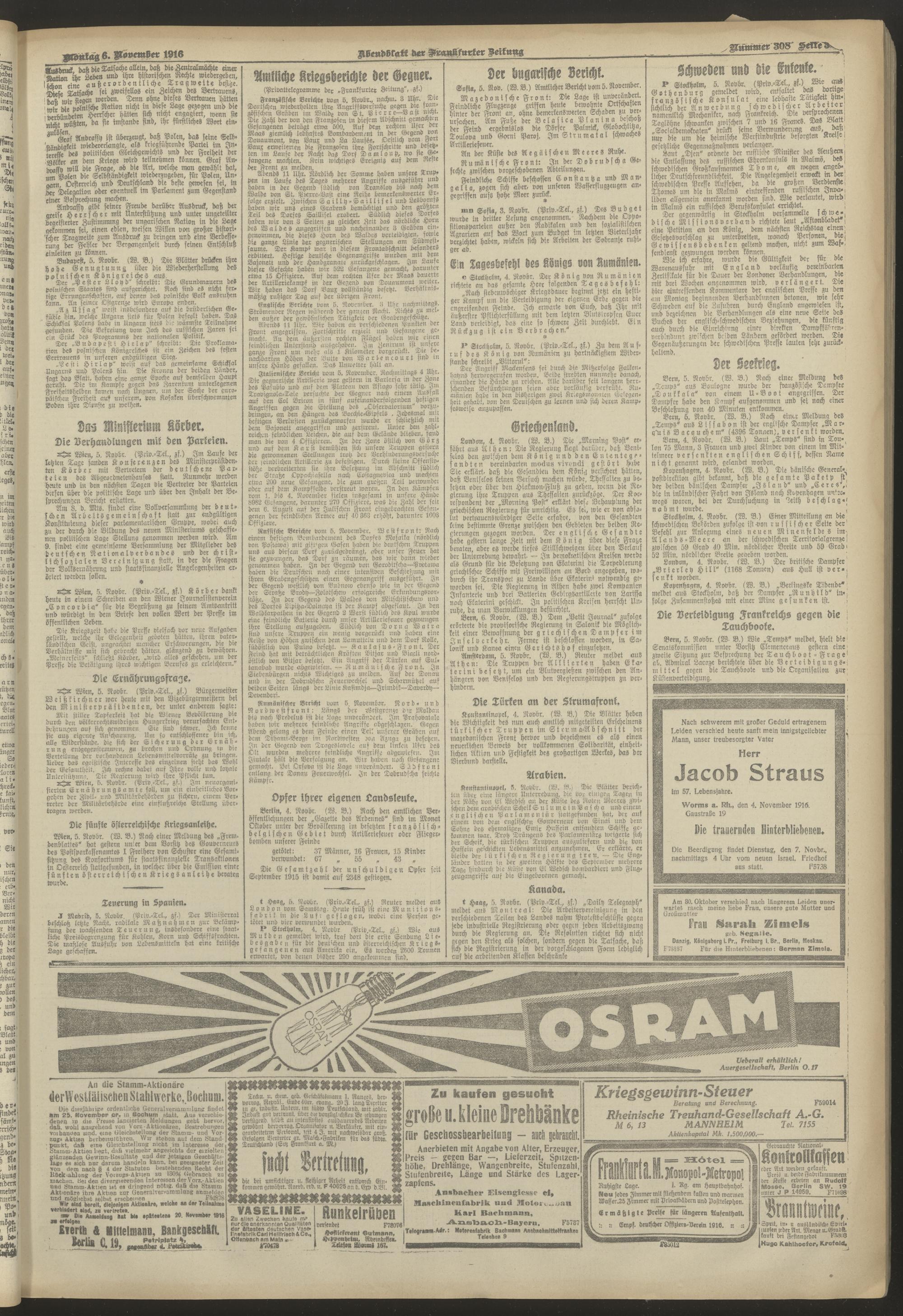 06.11.1916 = Nr. 308. Abendblatt