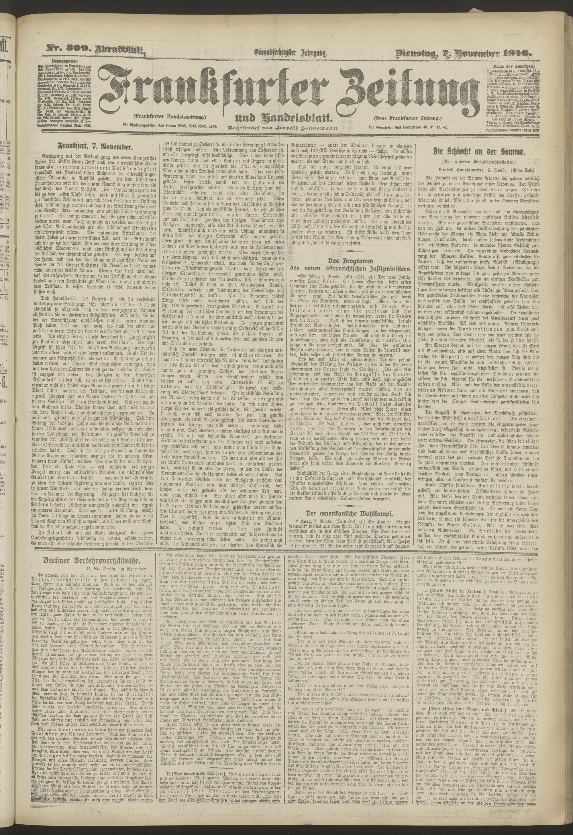 07.11.1916 = Nr. 309. Abendblatt