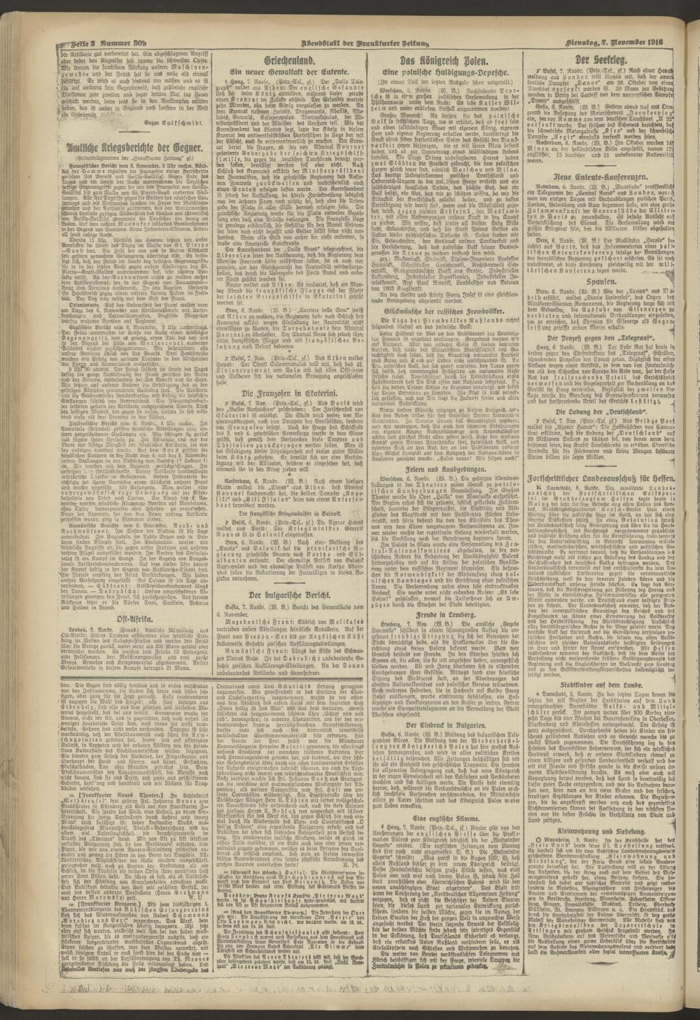 07.11.1916 = Nr. 309. Abendblatt