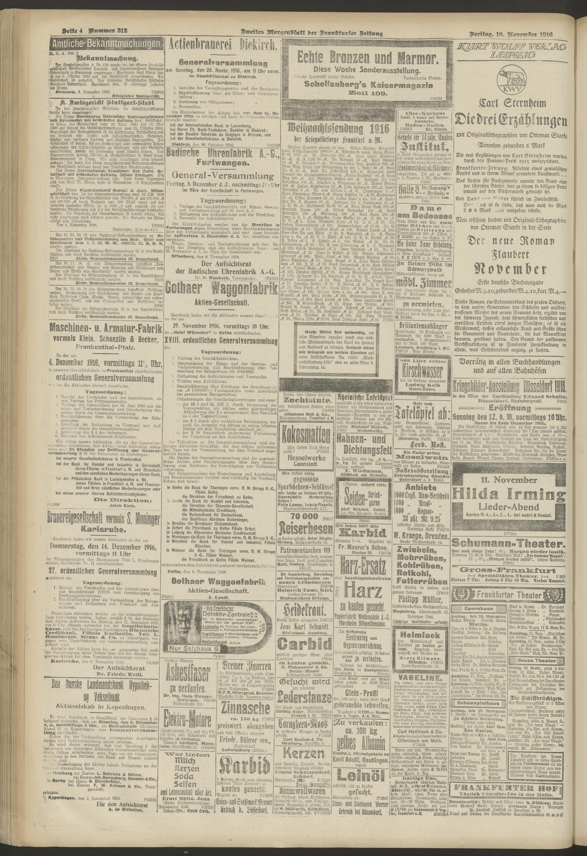 10.11.1916 = Nr. 312. Zweites Morgenblatt