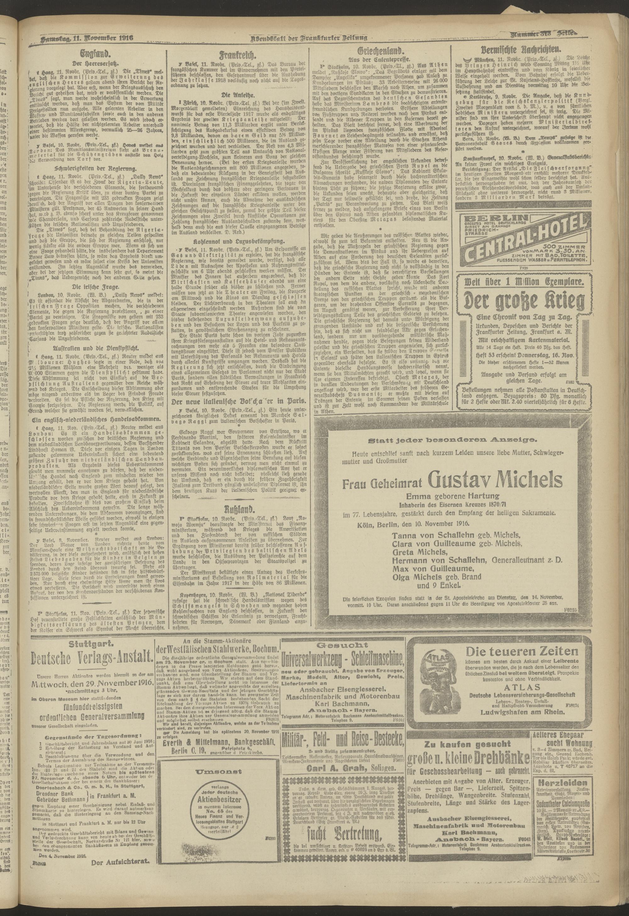 11.11.1916 = Nr. 313. Abendblatt