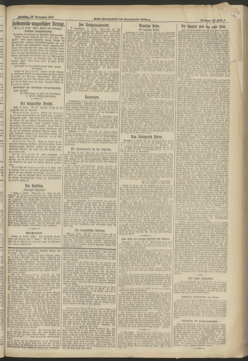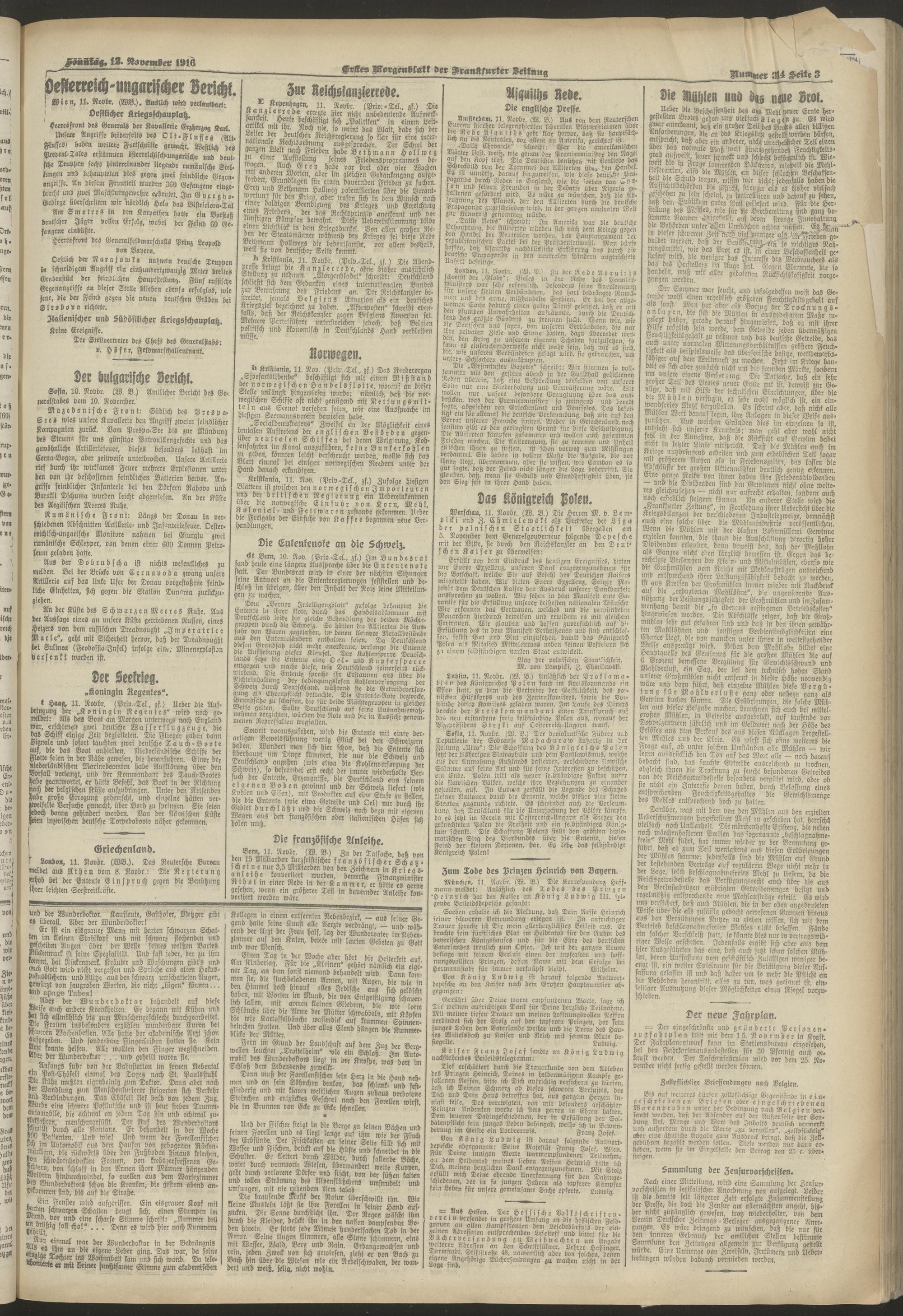 12.11.1916 = Nr. 314. Erstes Morgenblatt