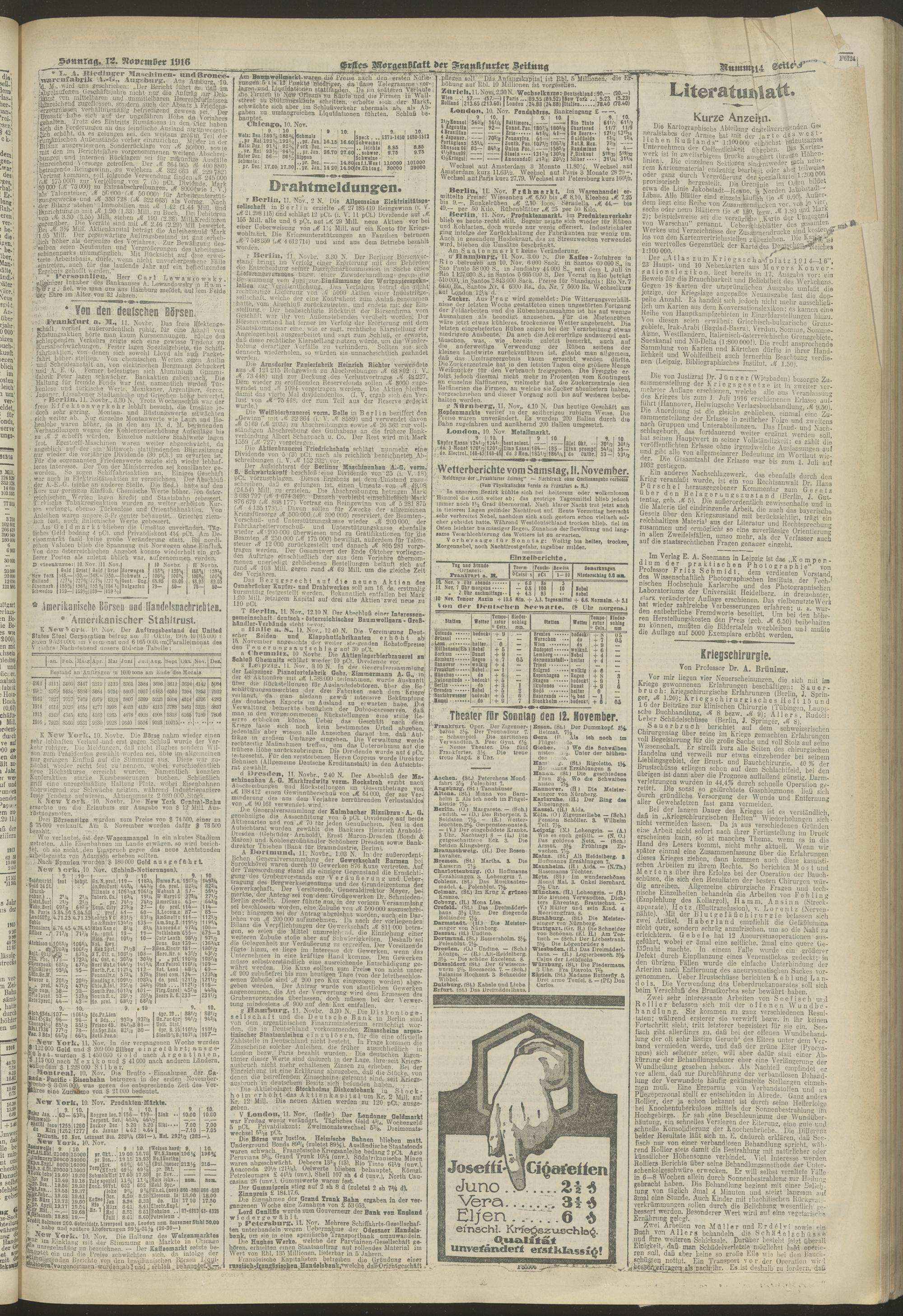 12.11.1916 = Nr. 314. Erstes Morgenblatt