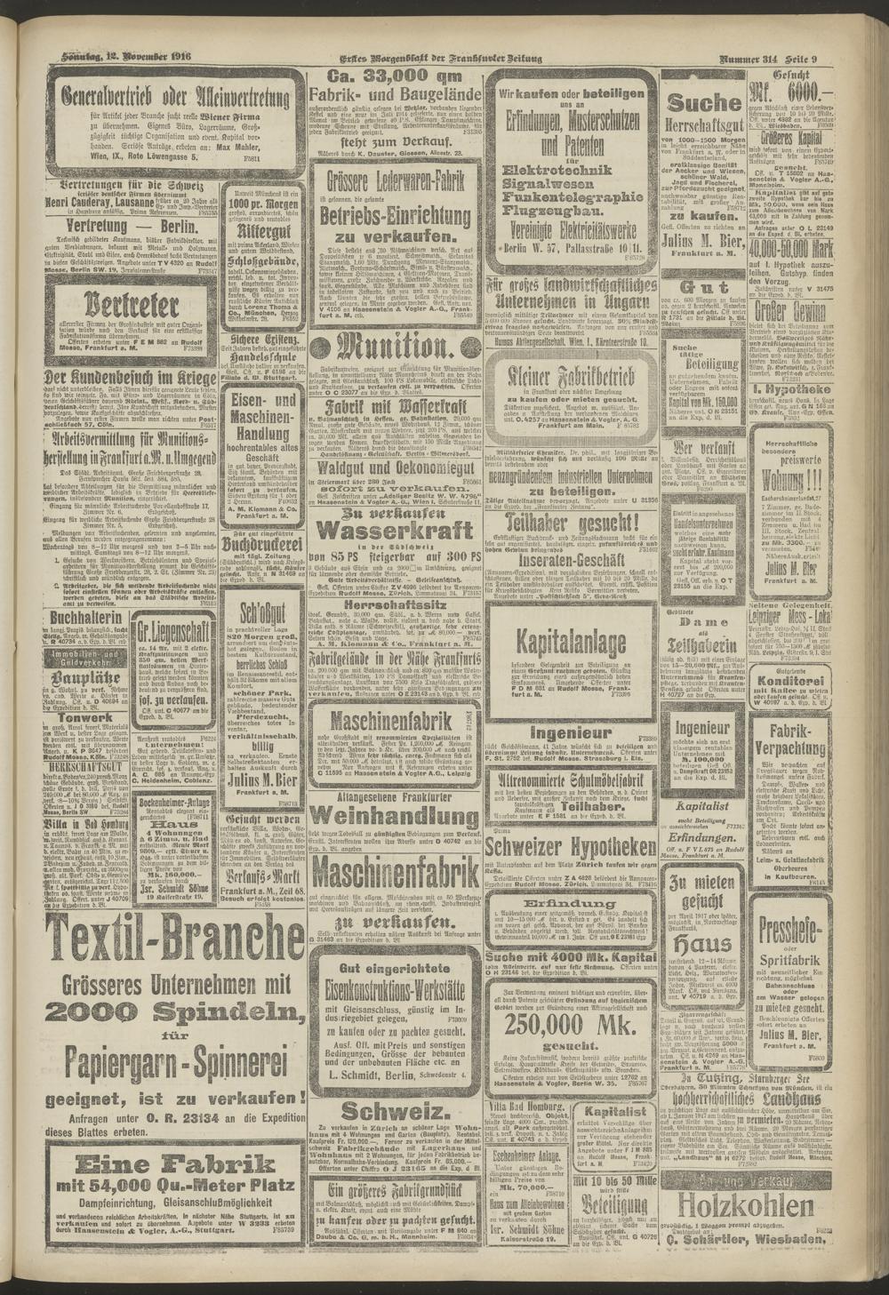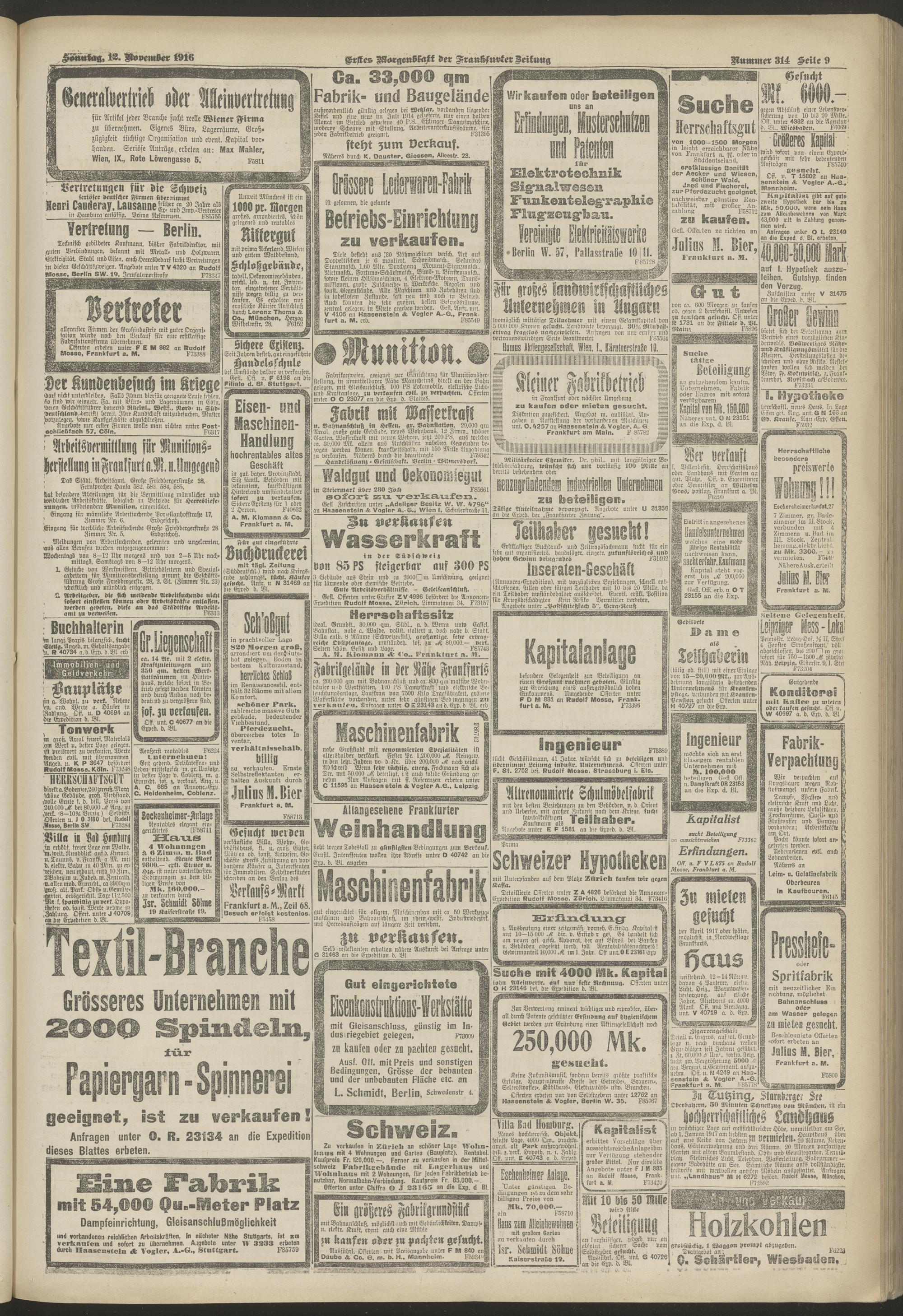 12.11.1916 = Nr. 314. Erstes Morgenblatt