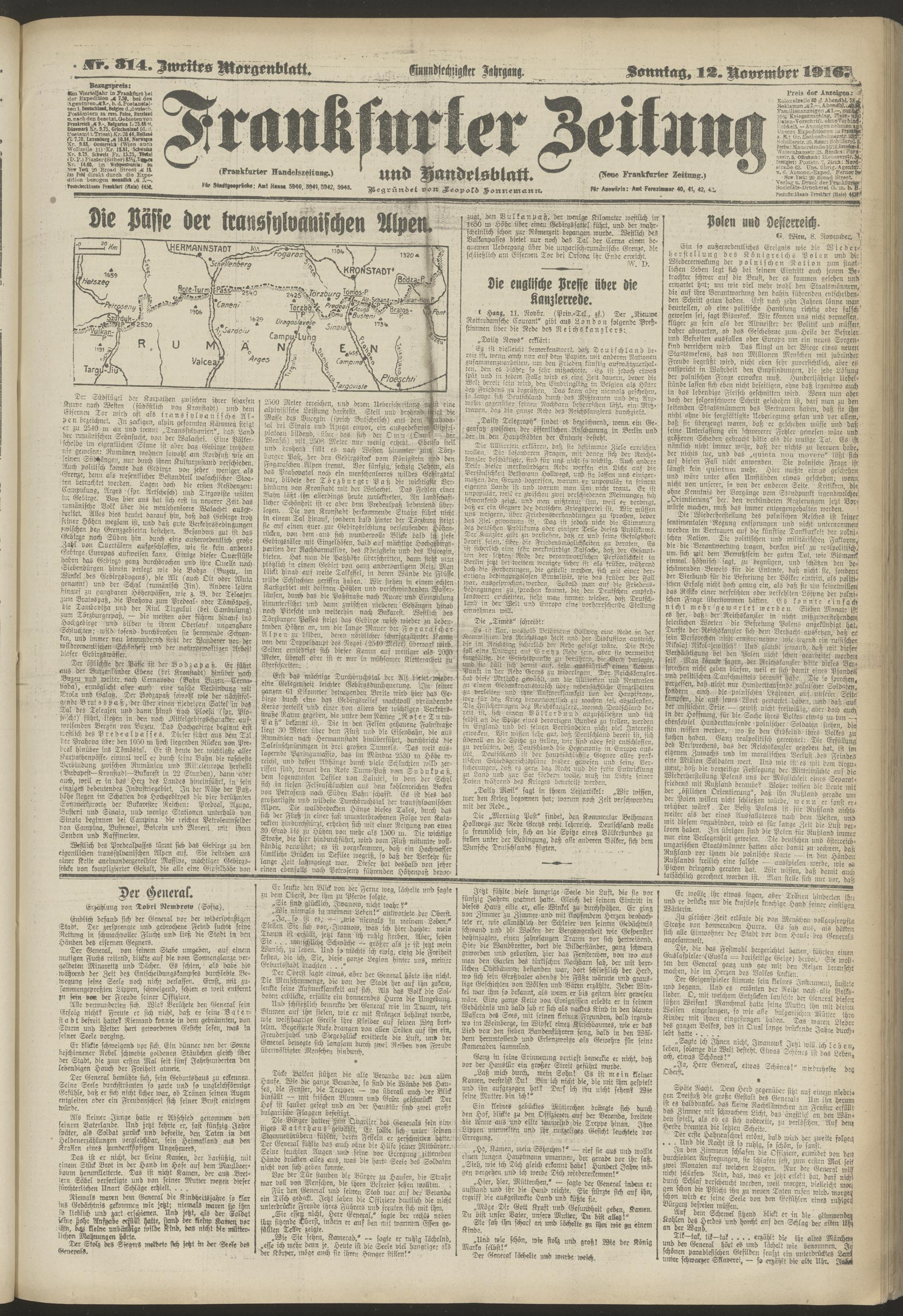 12.11.1916 = Nr. 314. Zweites Morgenblatt