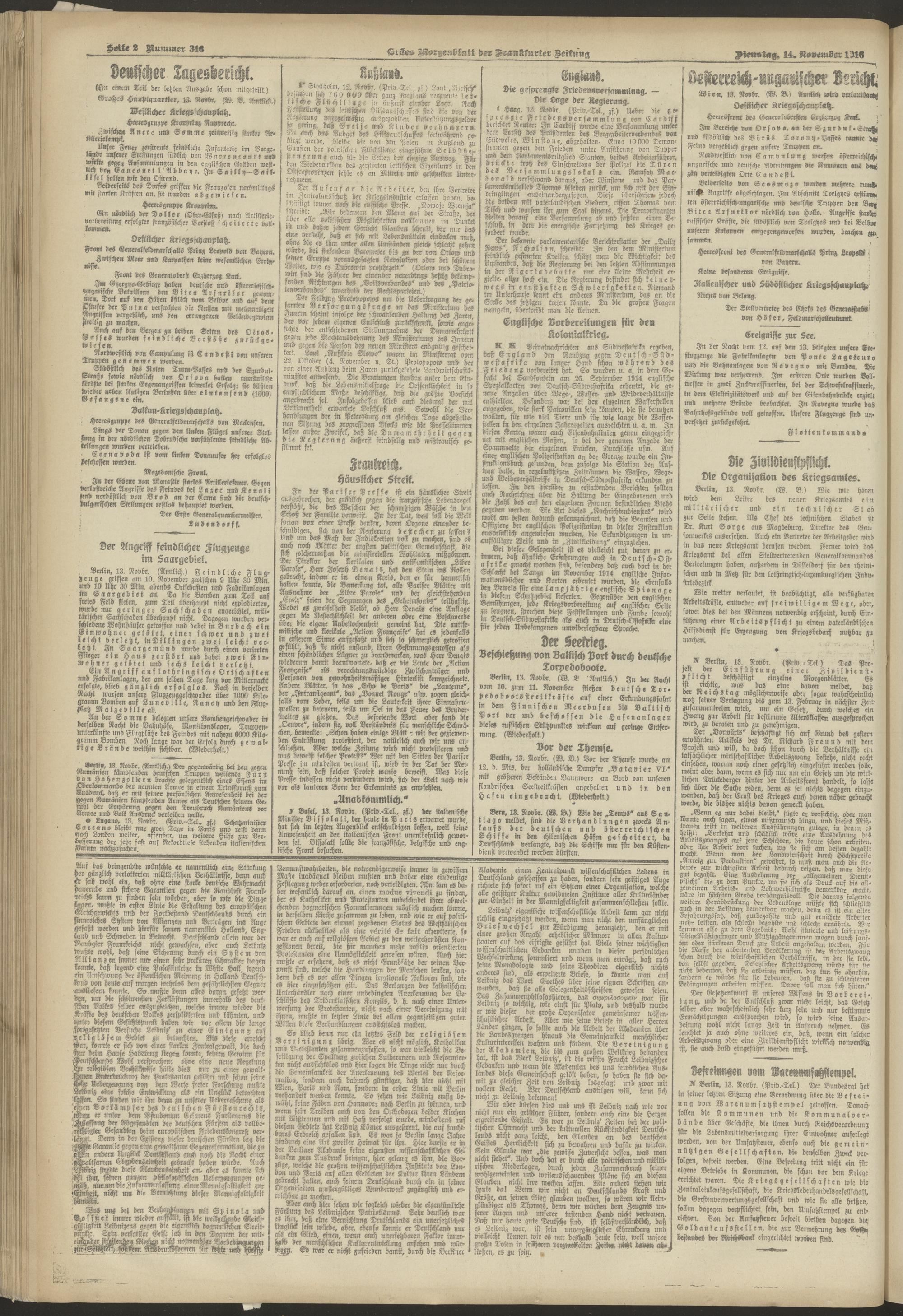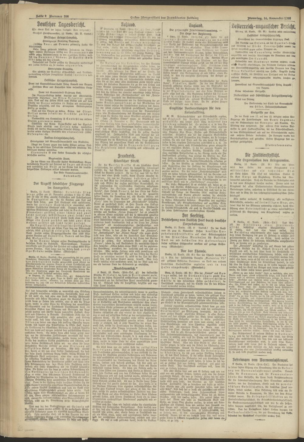 14.11.1916 = Nr. 316. Erstes Morgenblatt