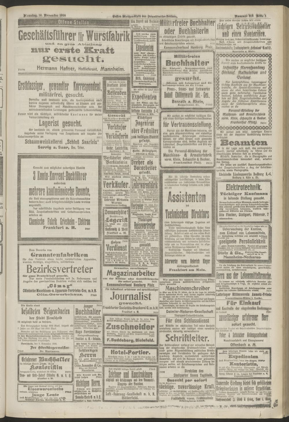 14.11.1916 = Nr. 316. Erstes Morgenblatt