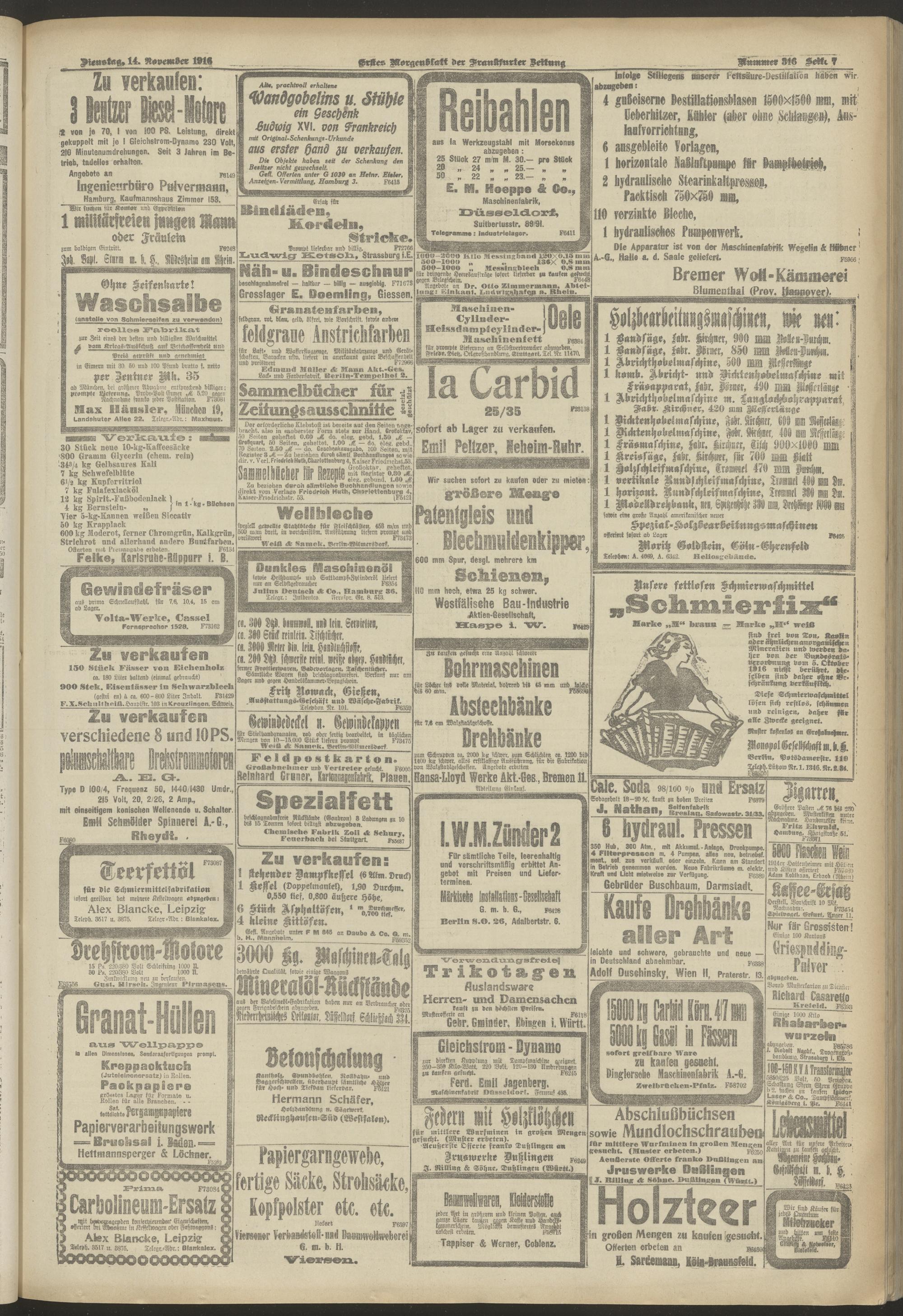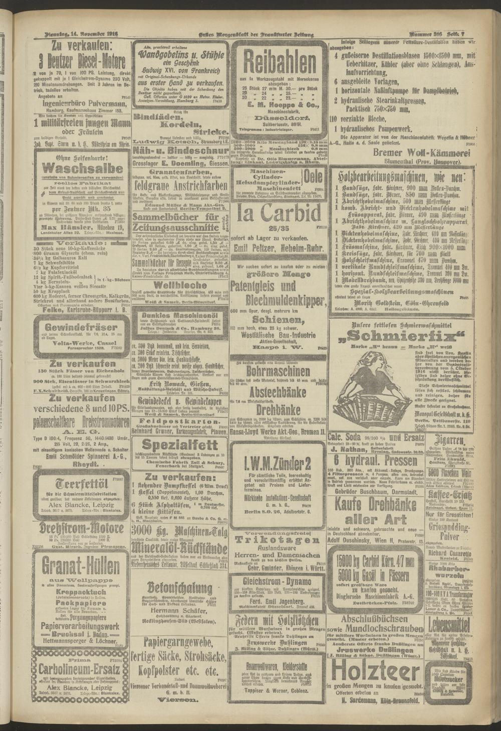 14.11.1916 = Nr. 316. Erstes Morgenblatt