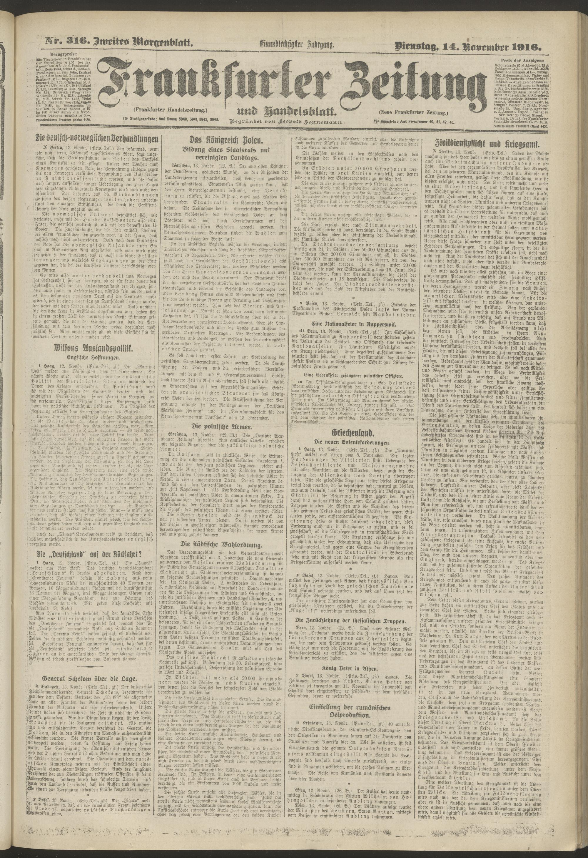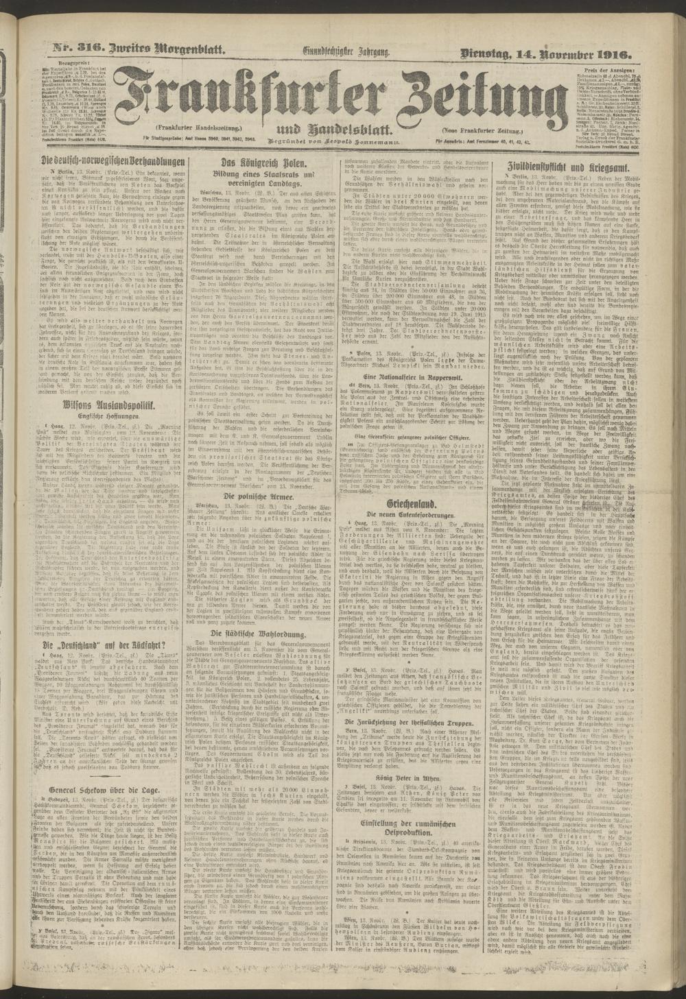 14.11.1916 = Nr. 316. Zweites Morgenblatt