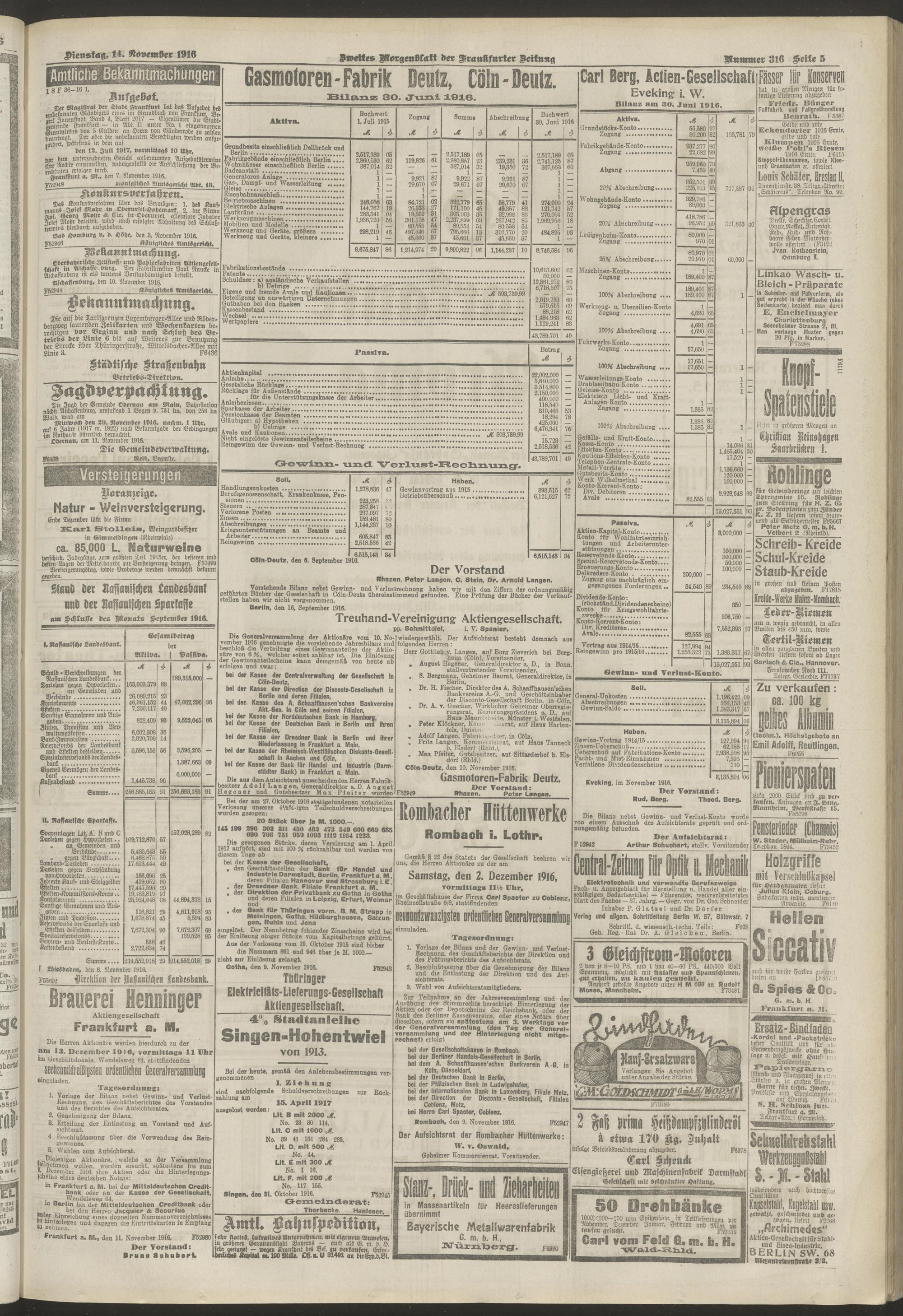 14.11.1916 = Nr. 316. Zweites Morgenblatt