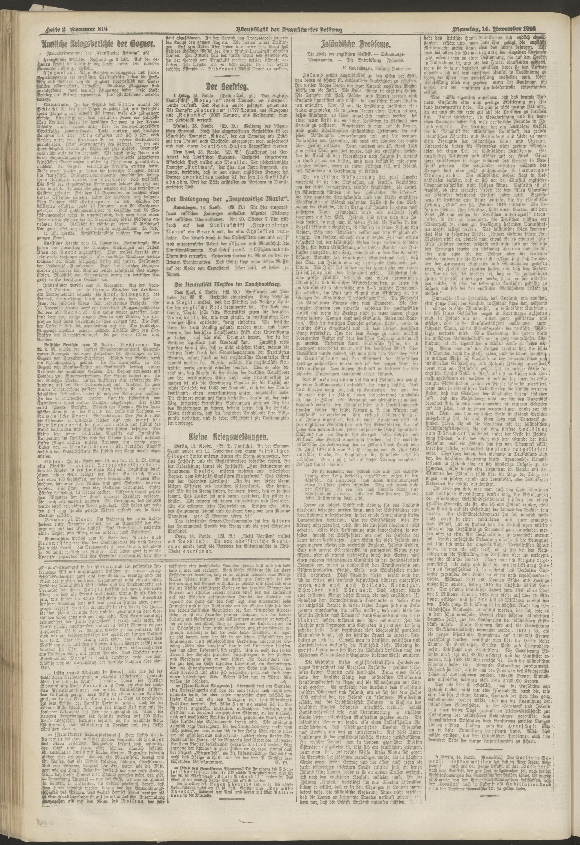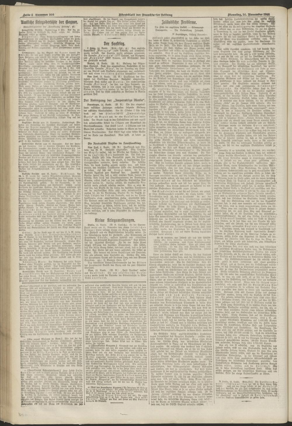 14.11.1916 = Nr. 316. Abendblatt