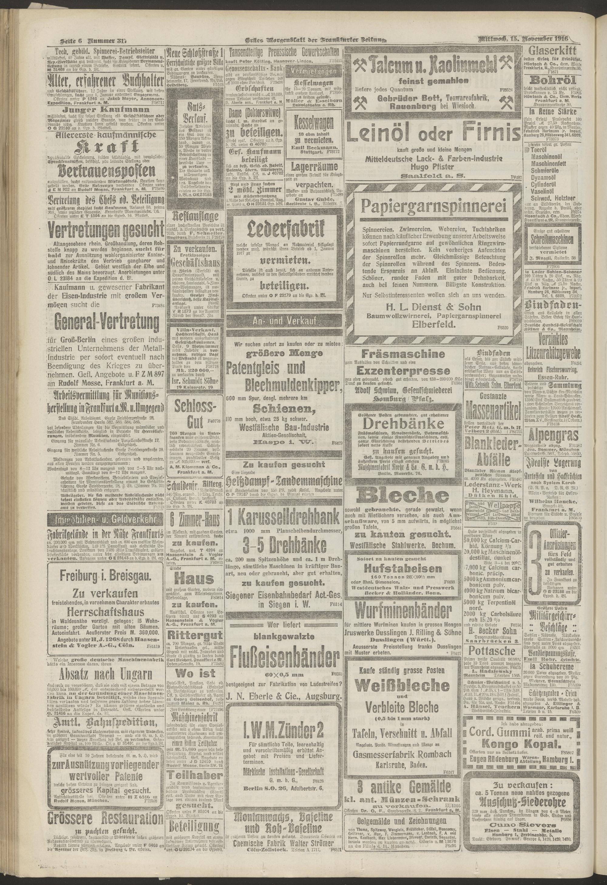 15.11.1916 = Nr. 317. Erstes Morgenblatt