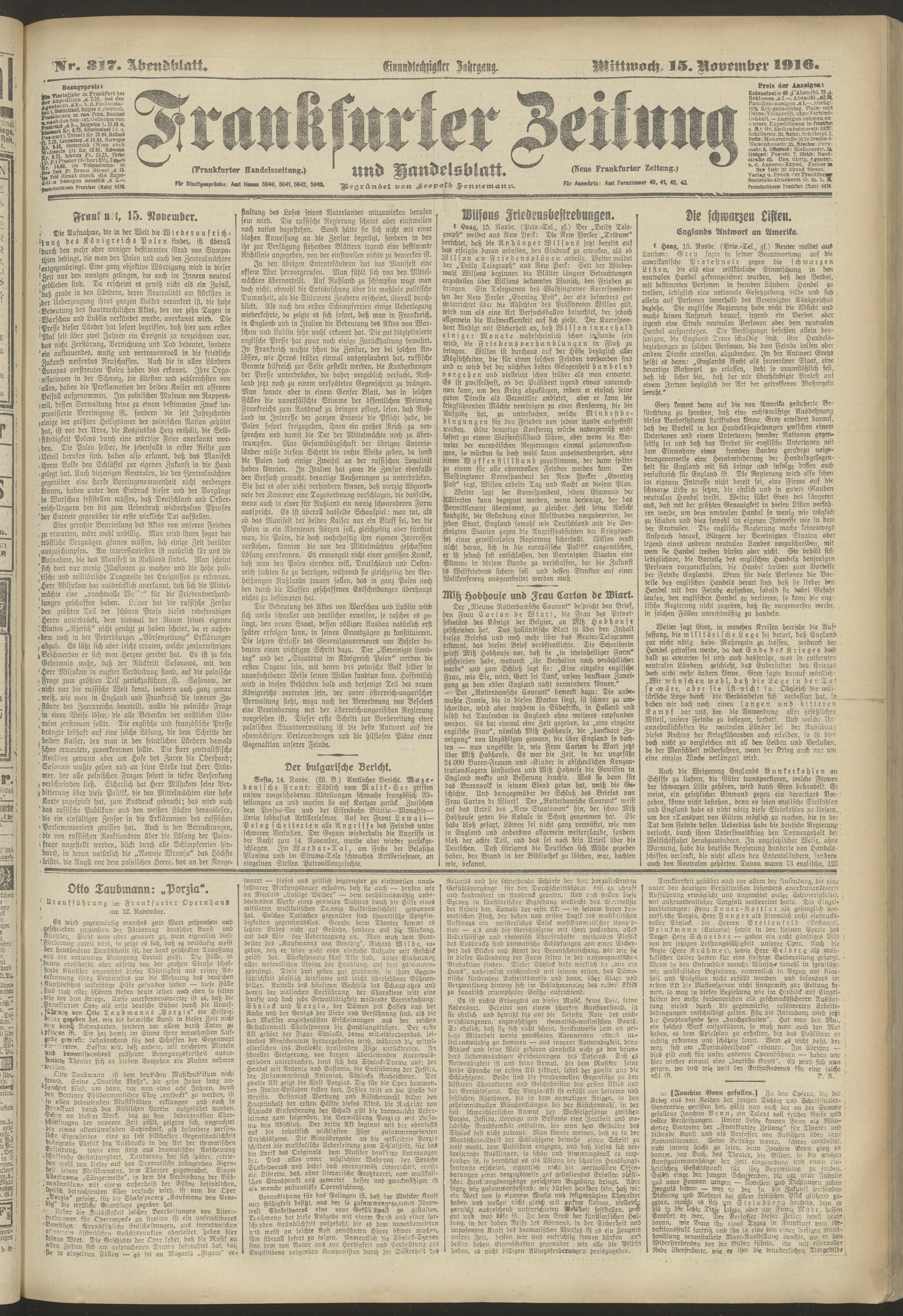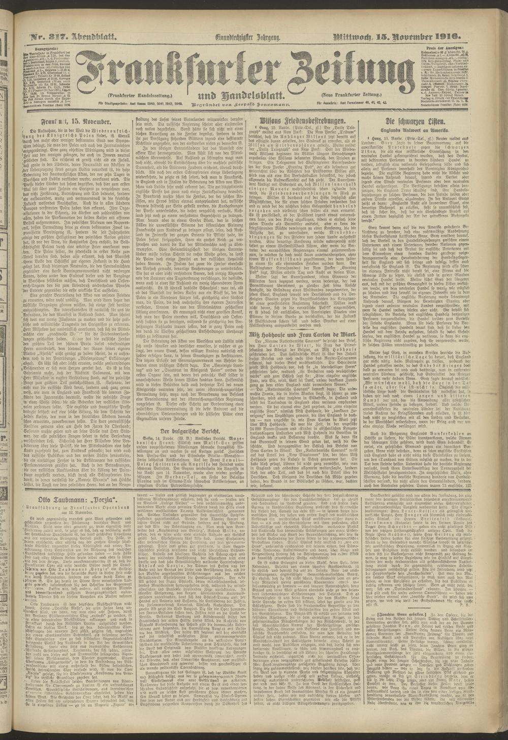 15.11.1916 = Nr. 317. Abendblatt