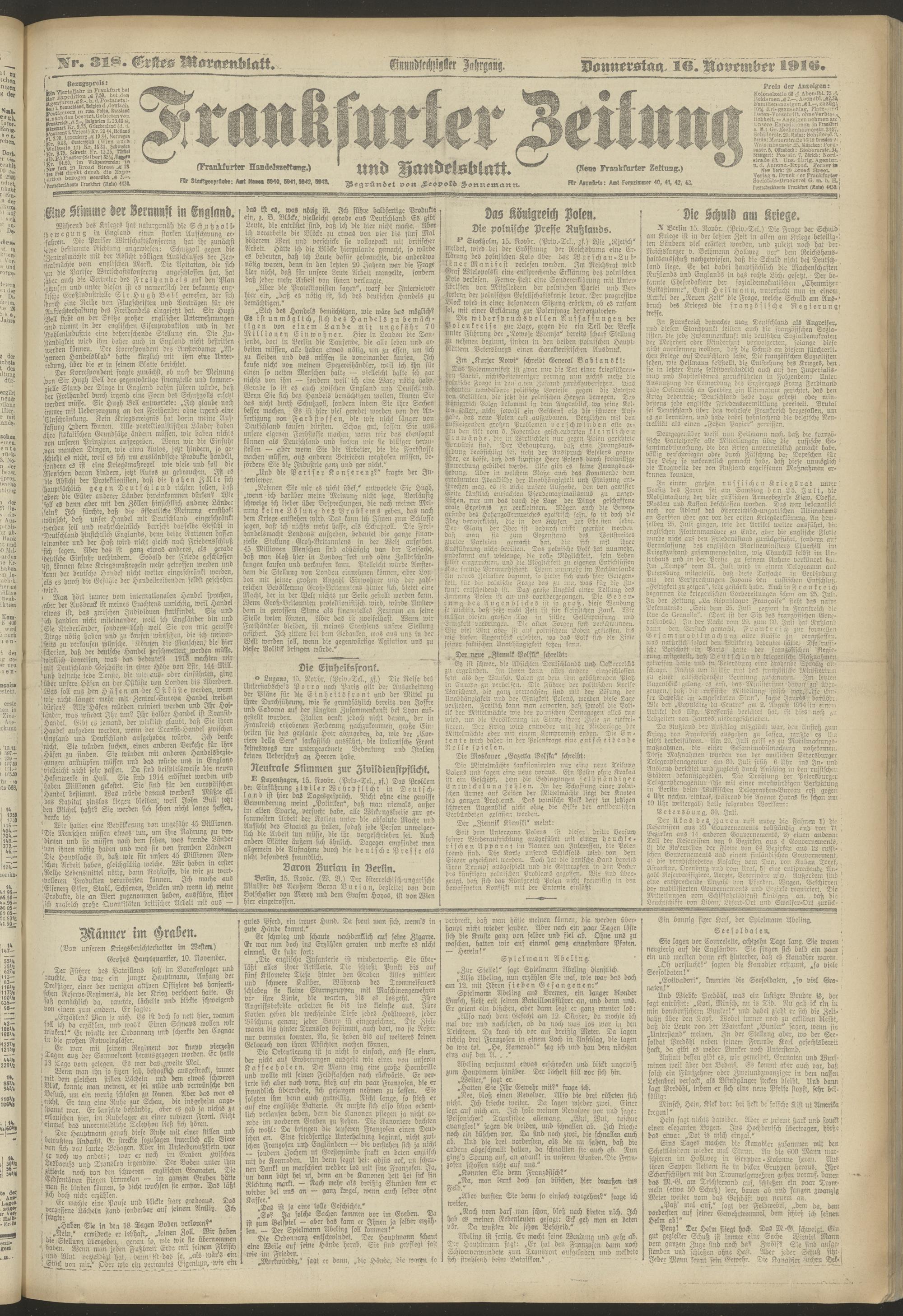 16.11.1916 = Nr. 318. Erstes Morgenblatt