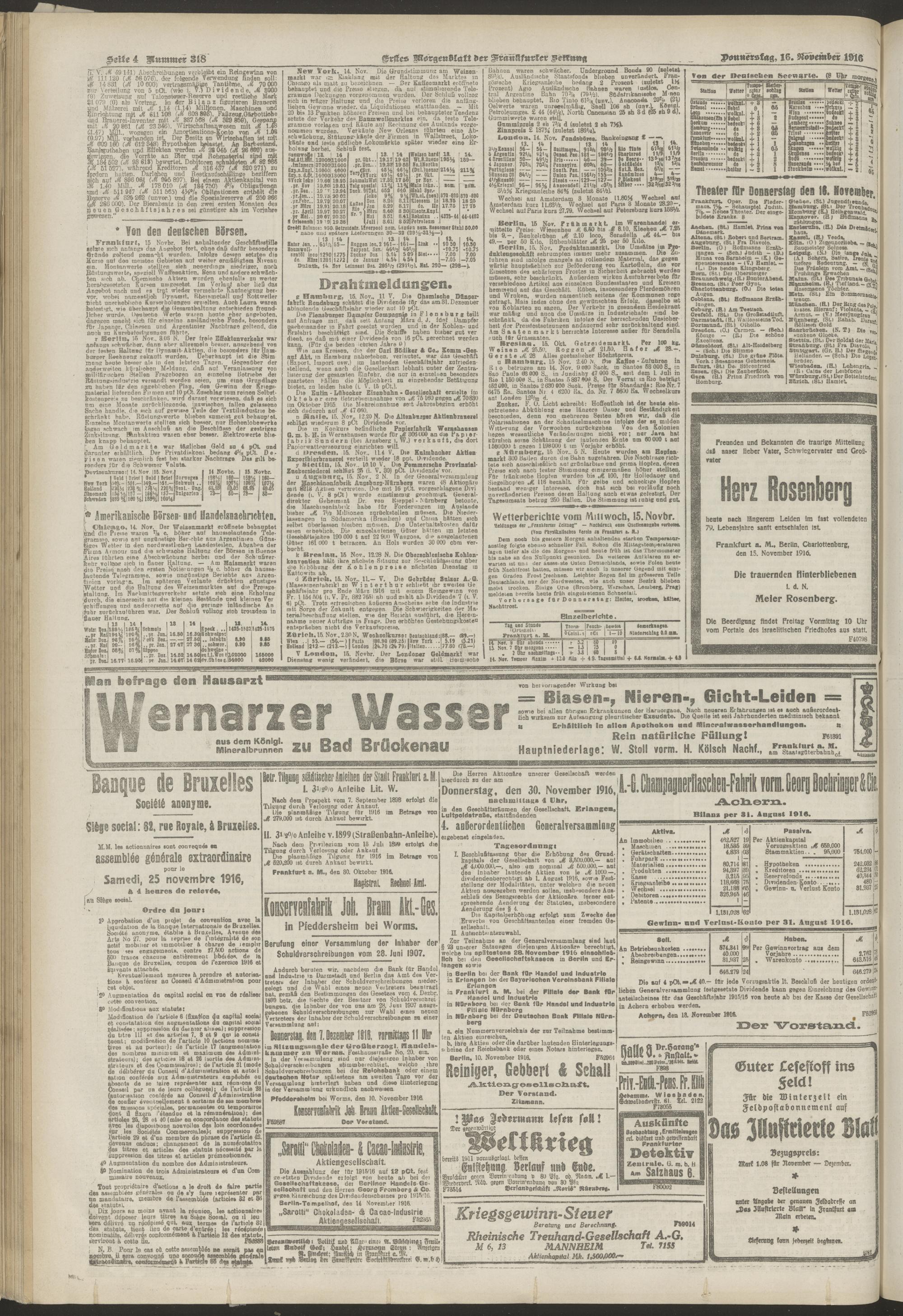 16.11.1916 = Nr. 318. Erstes Morgenblatt